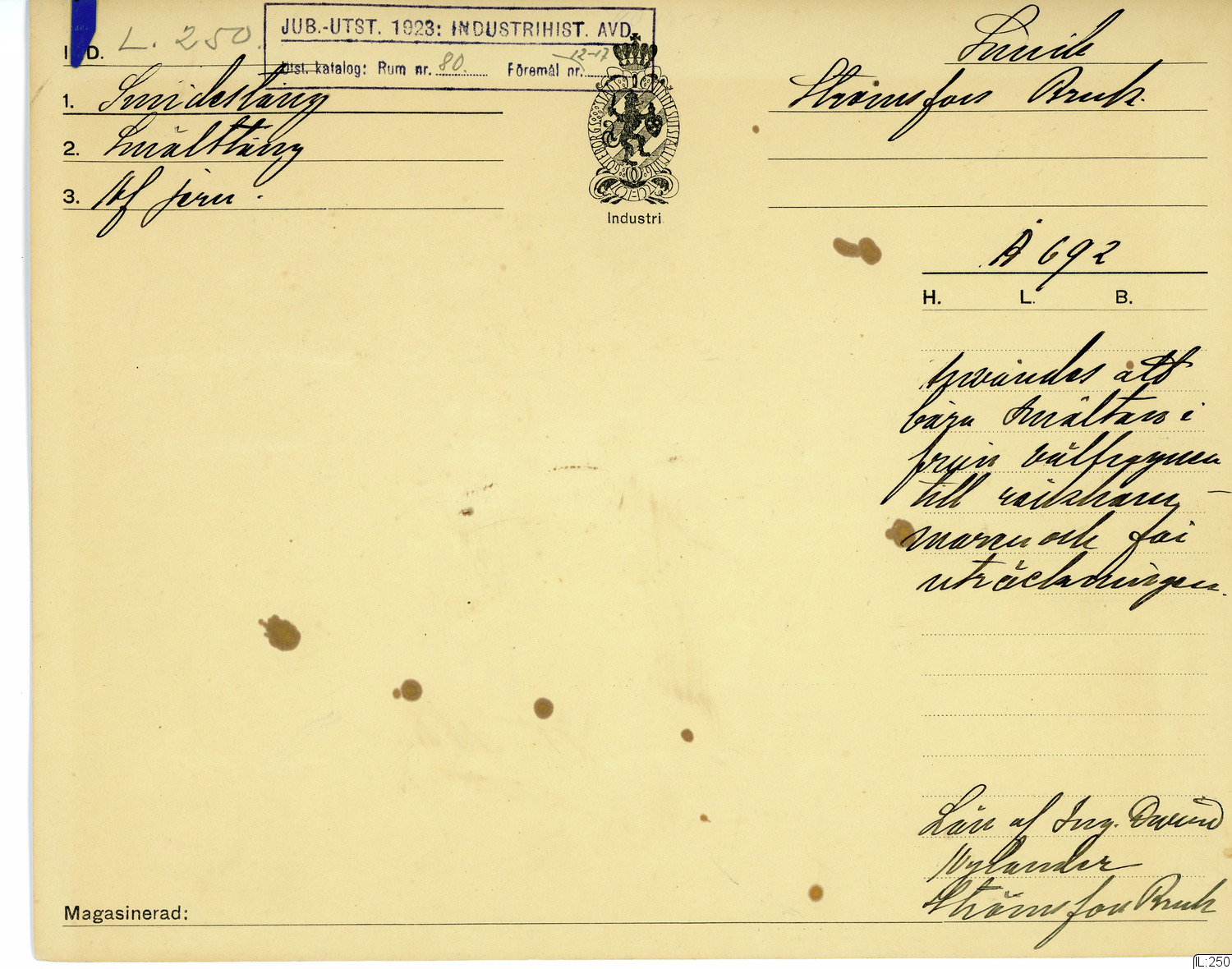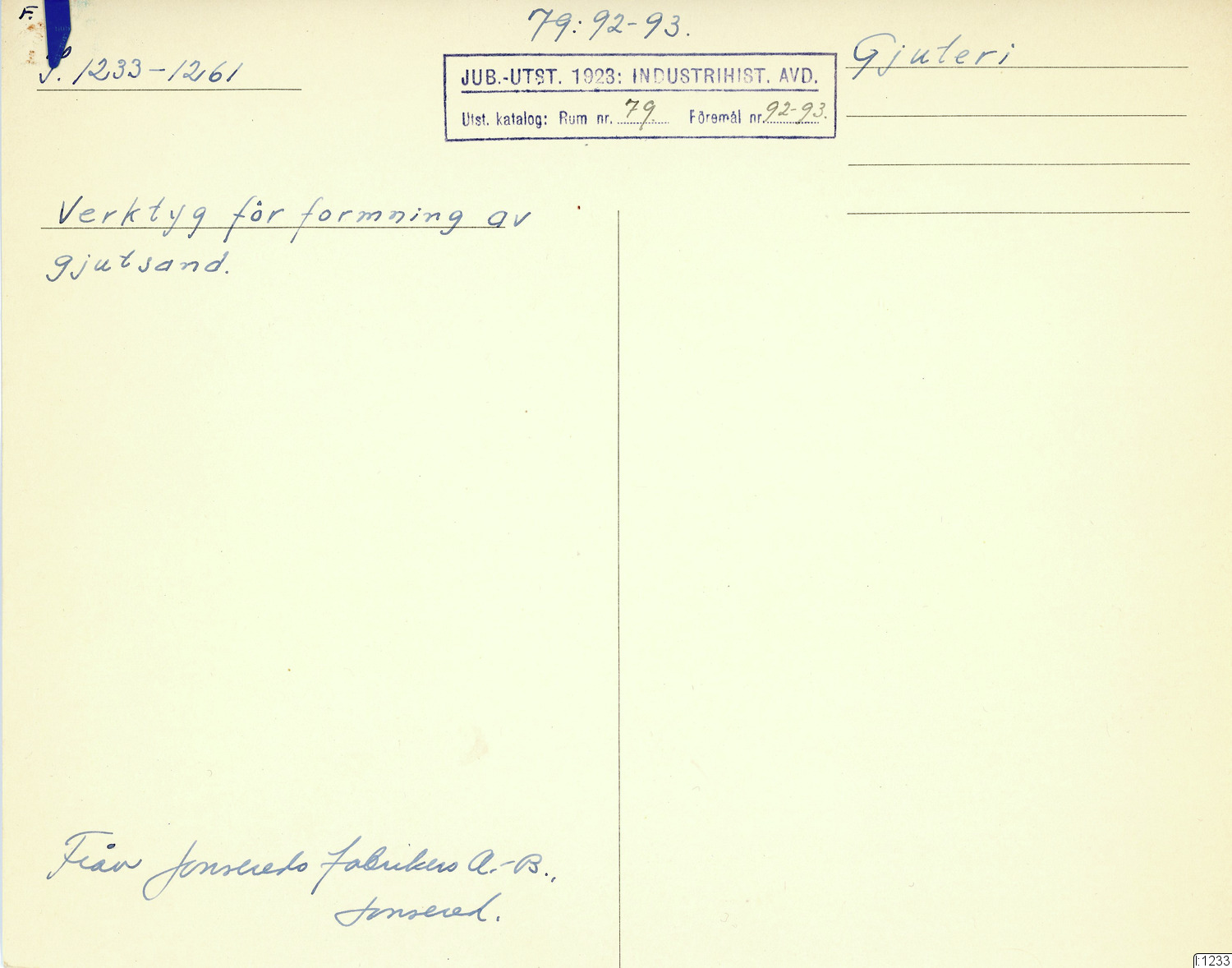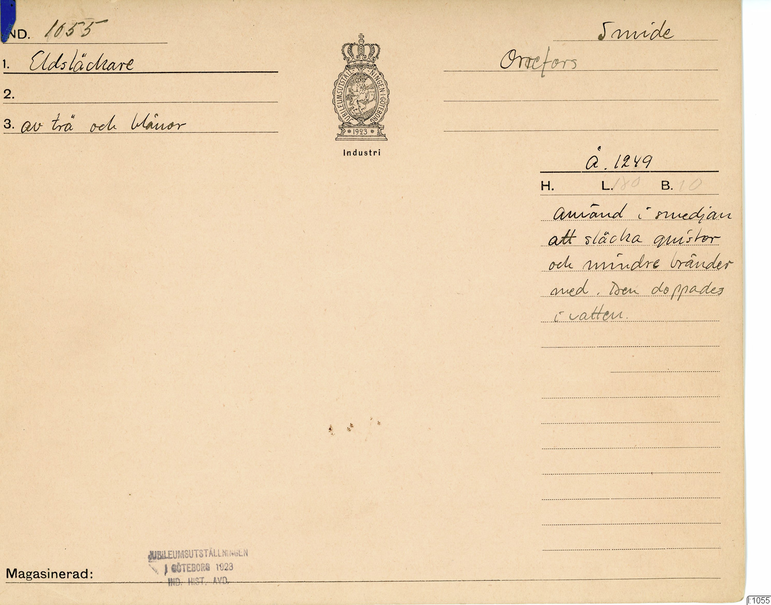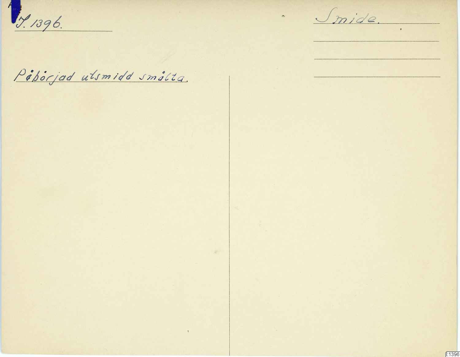 GIM katalogkort Industri 9 : Järnindustri IX : Smide 1: Smältsmide