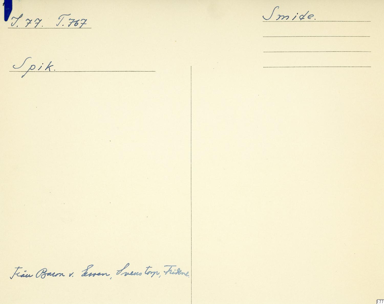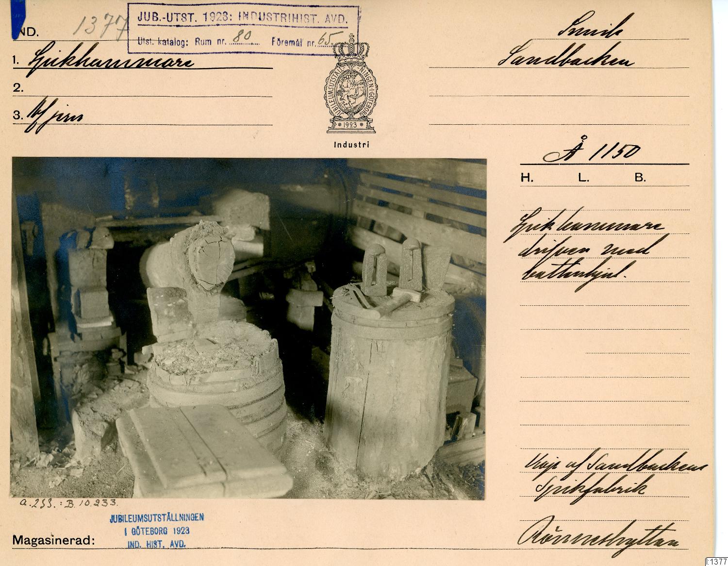 GIM katalogkort Industri 11 : Järnindustri XI: Smide 3: Manufakturering : Spiksmide, liesmide