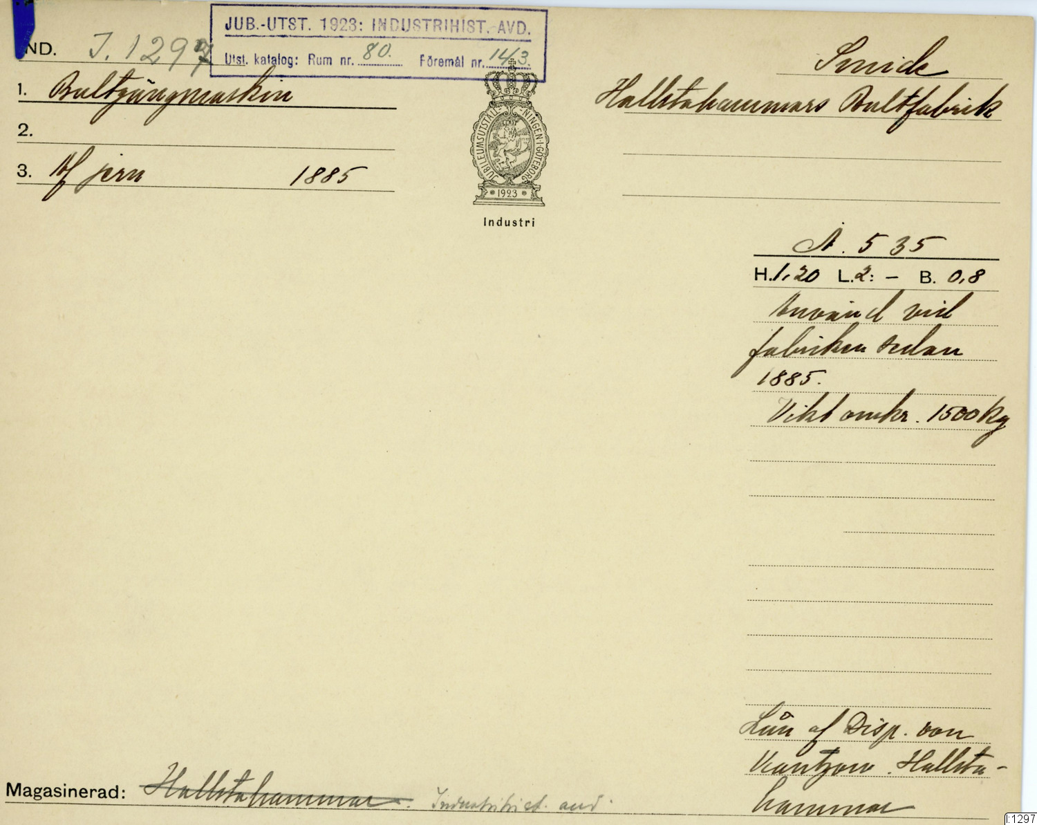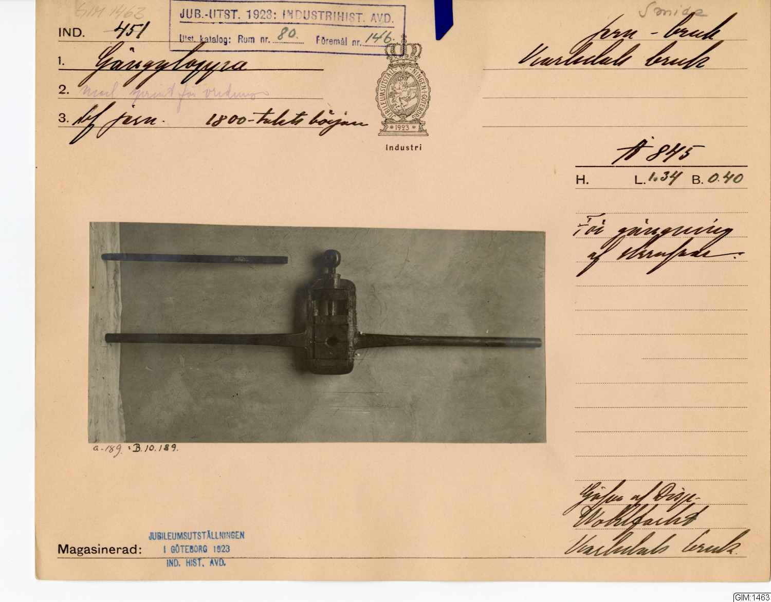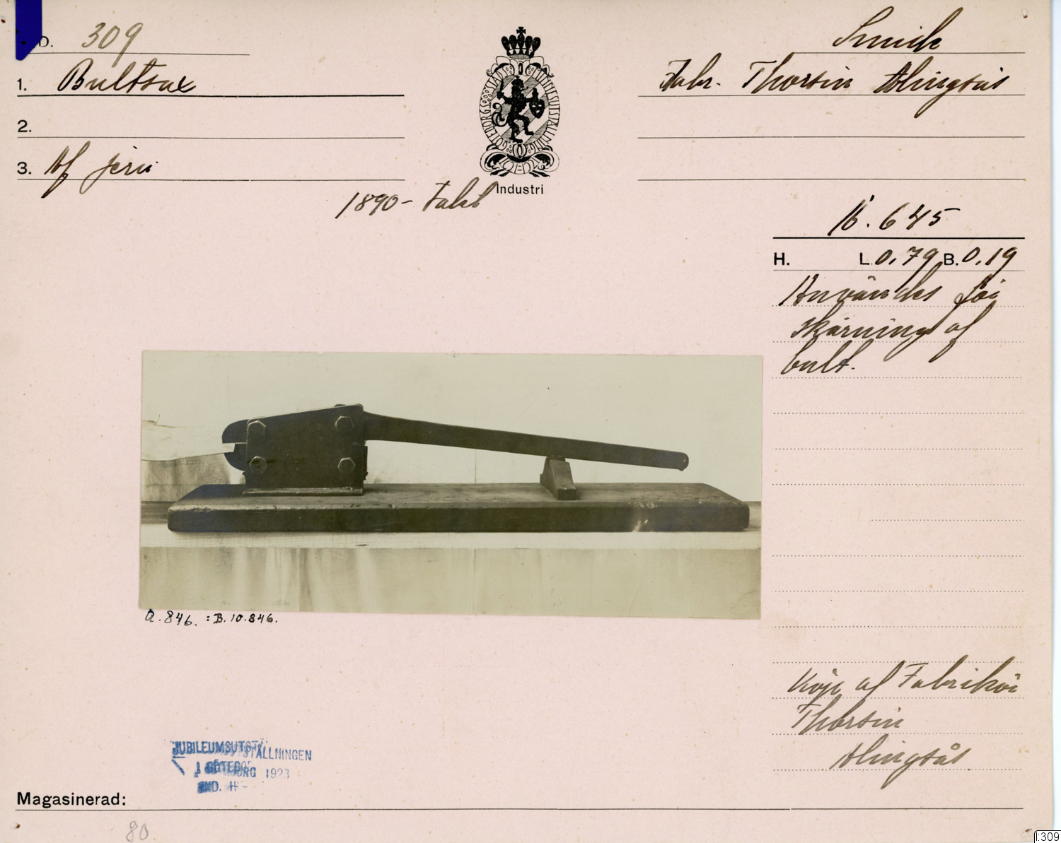 GIM katalogkort Industri 13 : Järnindustri XIII : Smide 5 : Manufakturering: bäljar, järnbearbetningsmaskiner, kilstötar