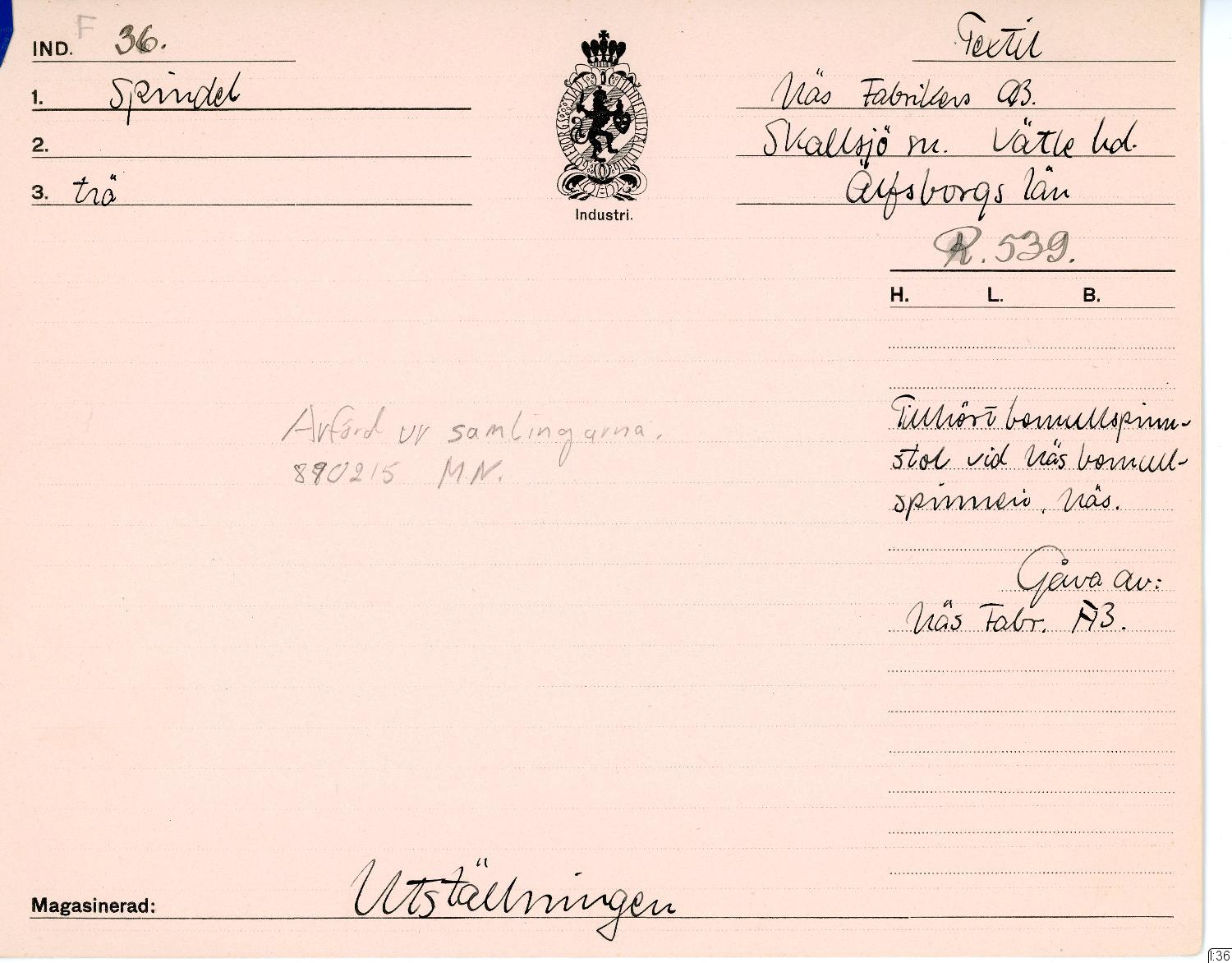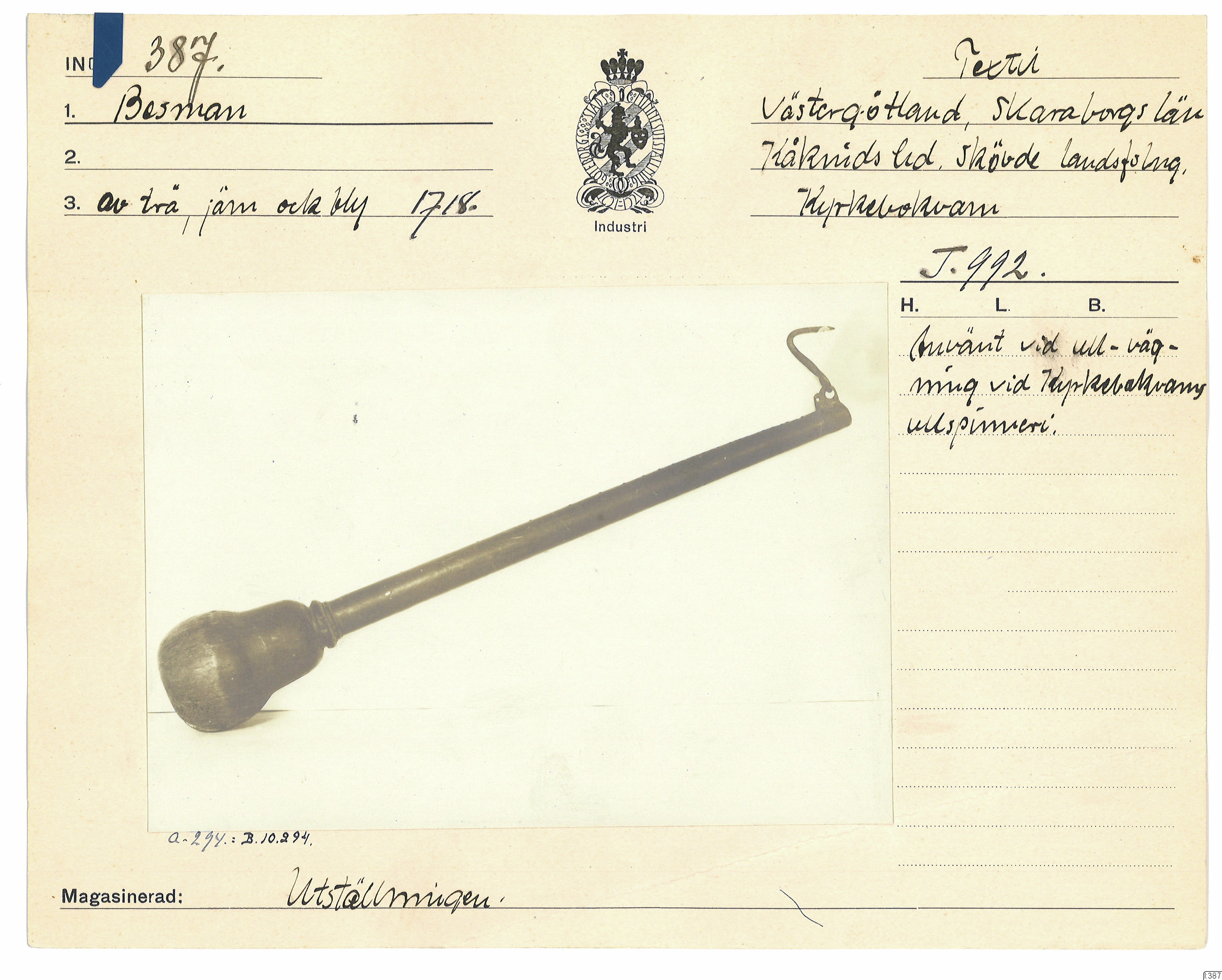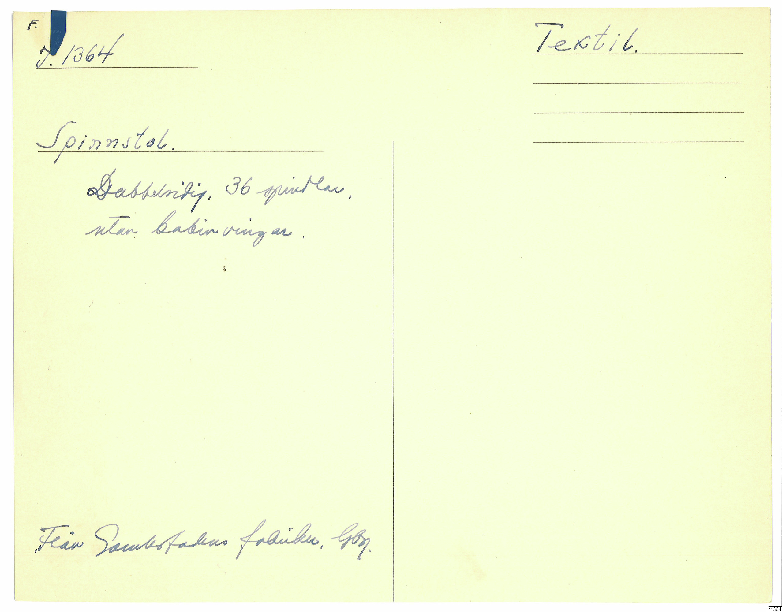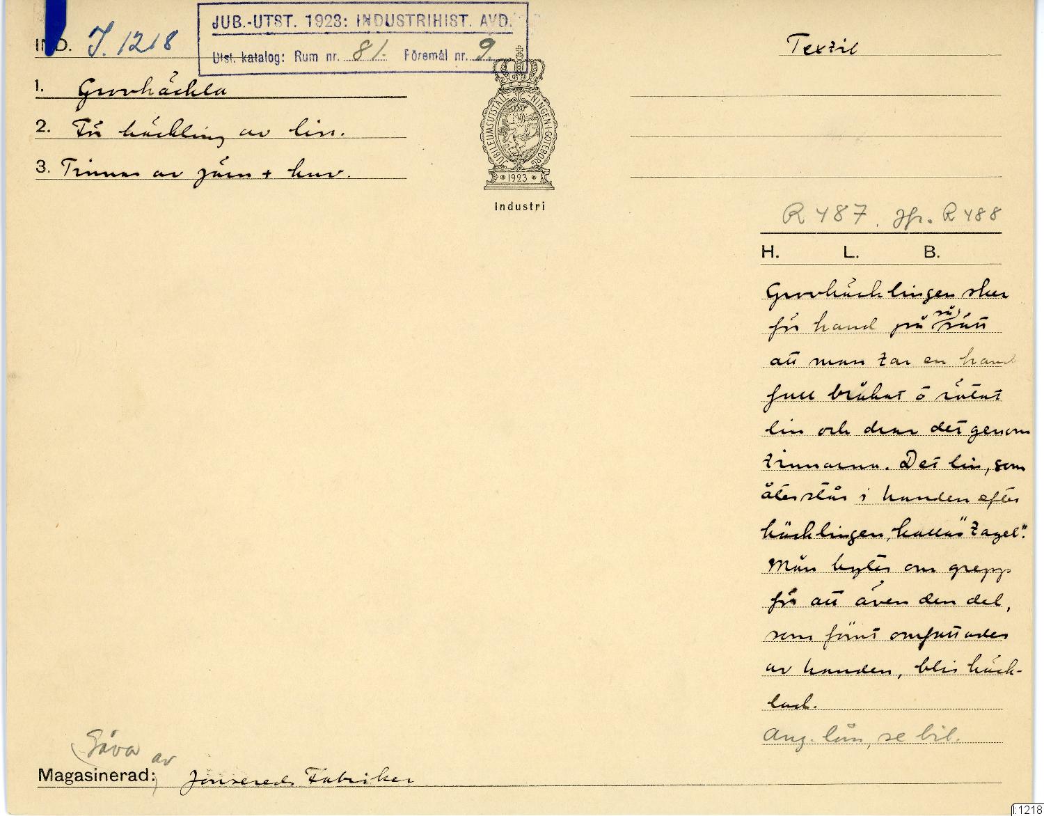 GIM katalogkort Industri 15 : Textilindustri I : Förberedande arbeten : Linberedning, bomullsberedning, ullberedning, Spinning: bomullsspinning, ullspinning