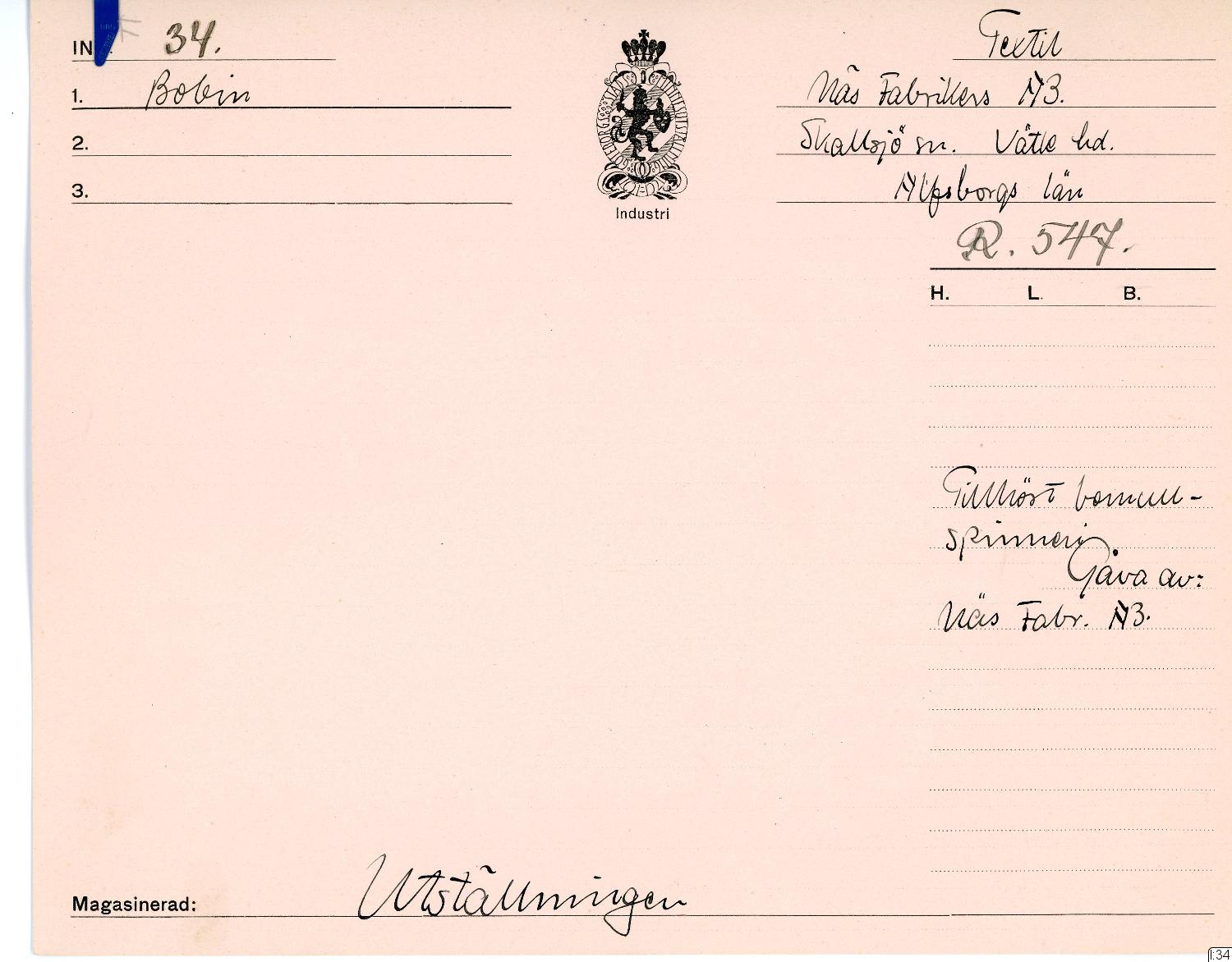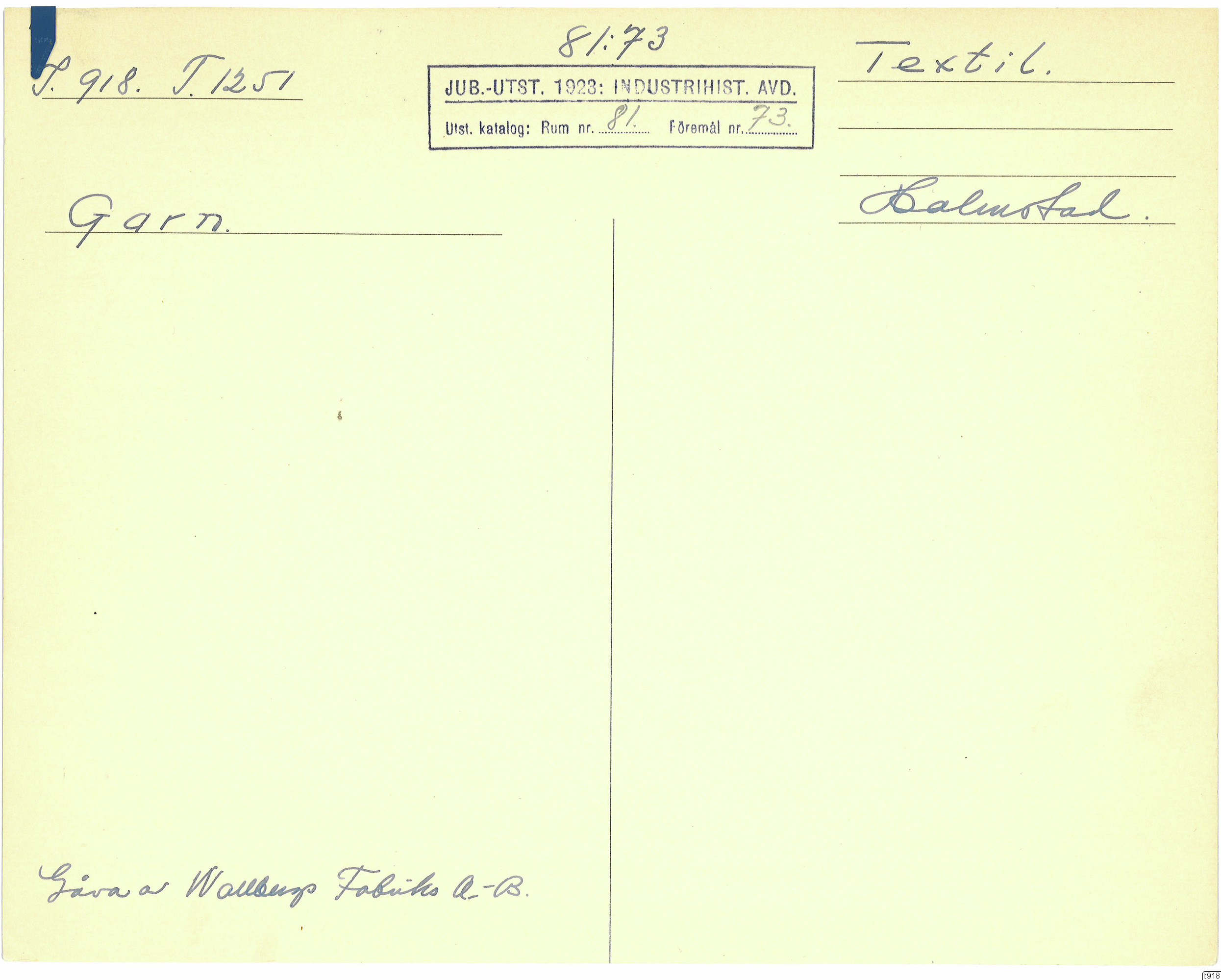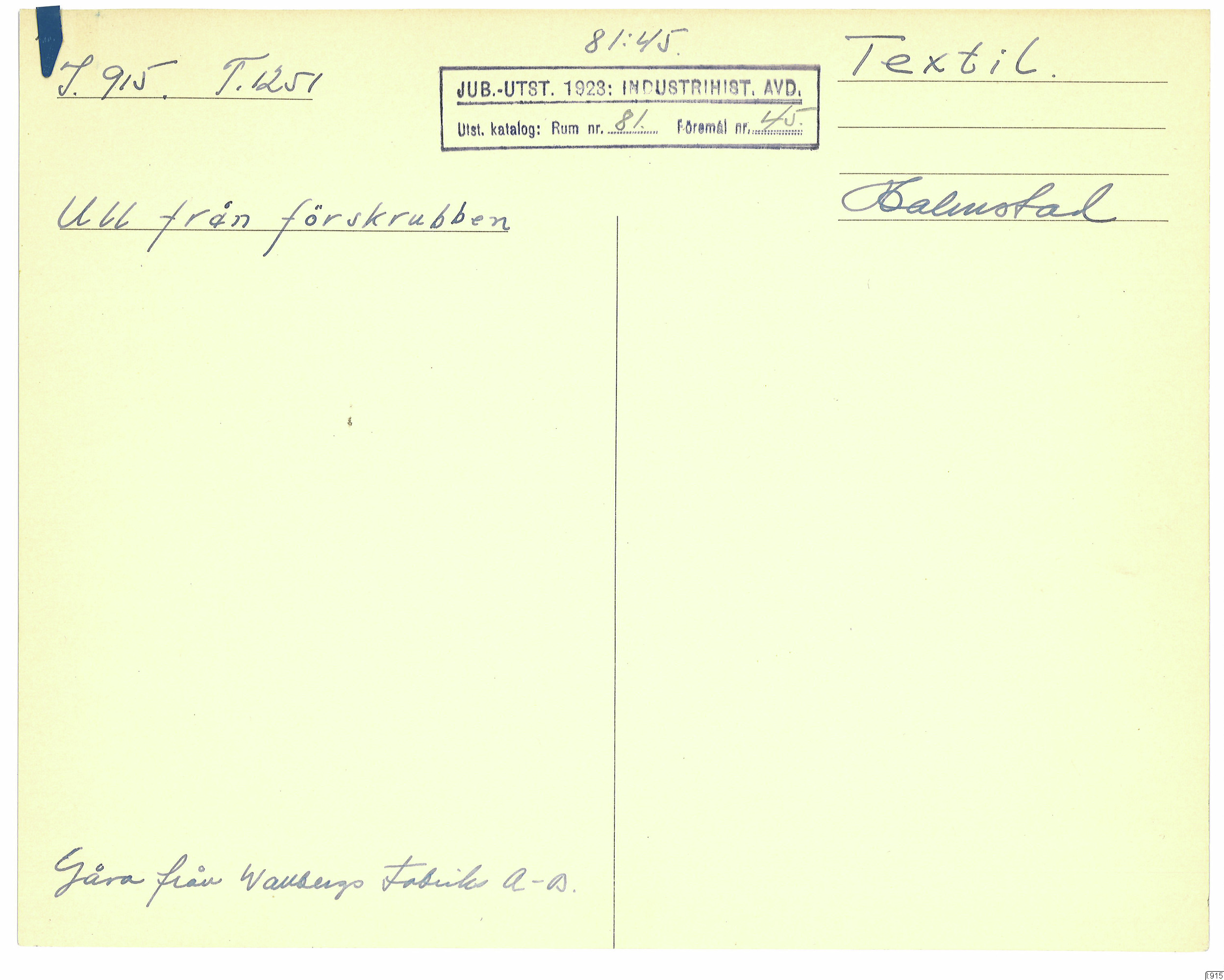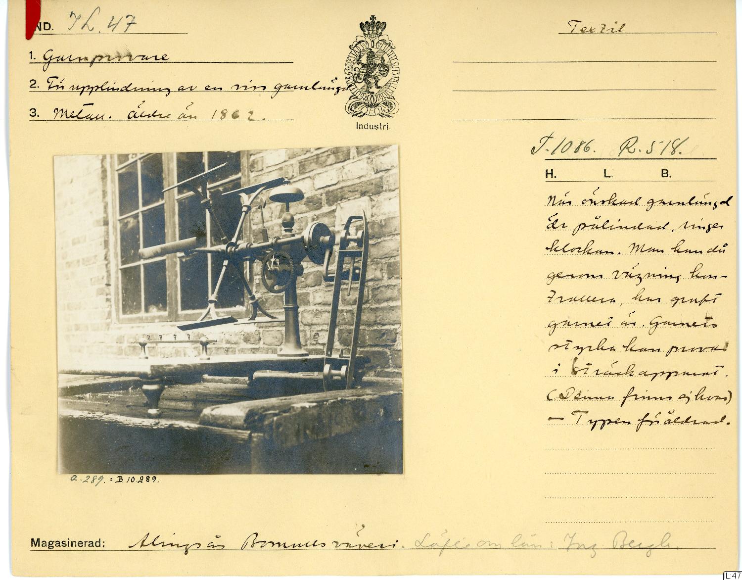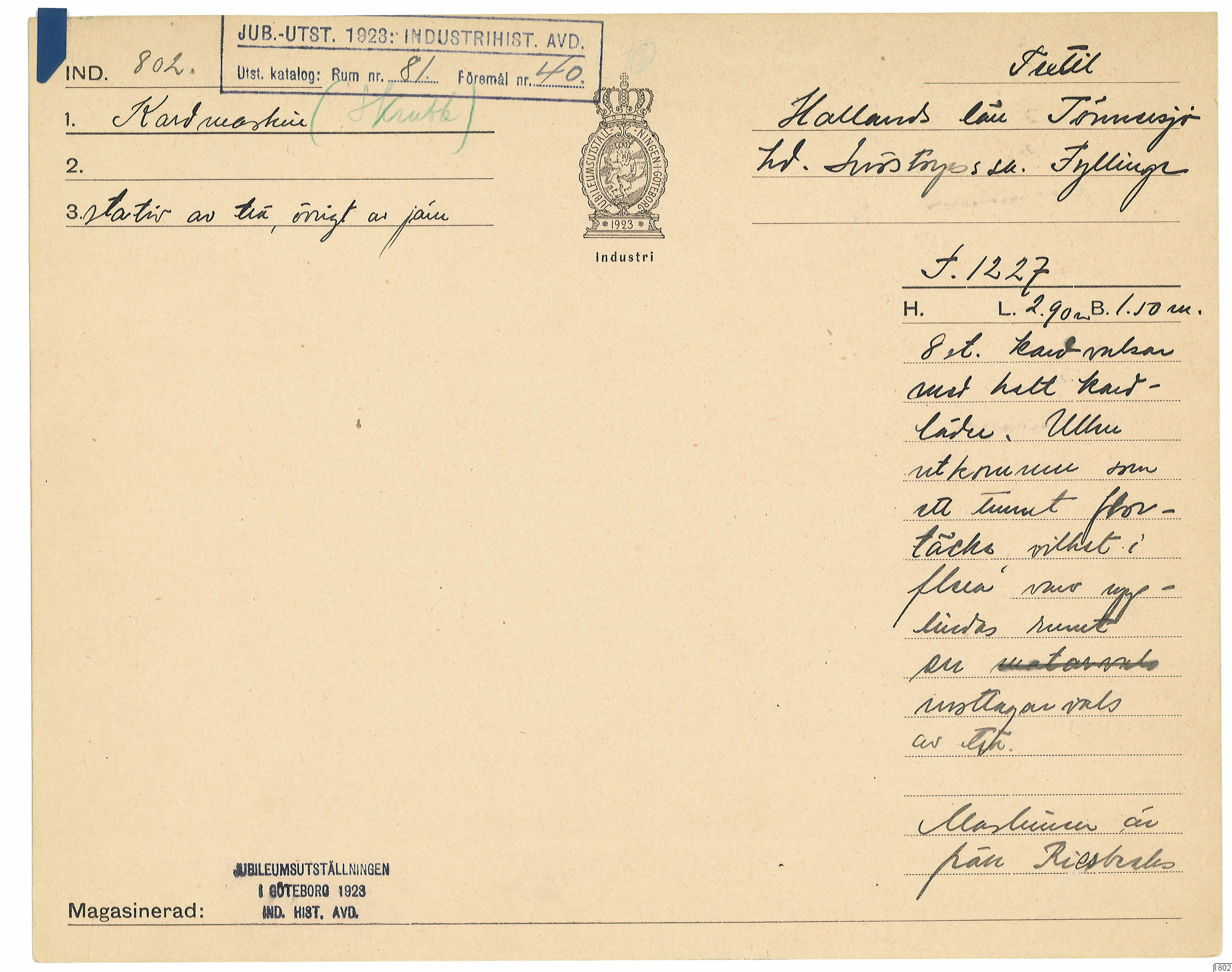 GIM katalogkort Industri 15: Textilindustri I :: kapsel, katalogkort