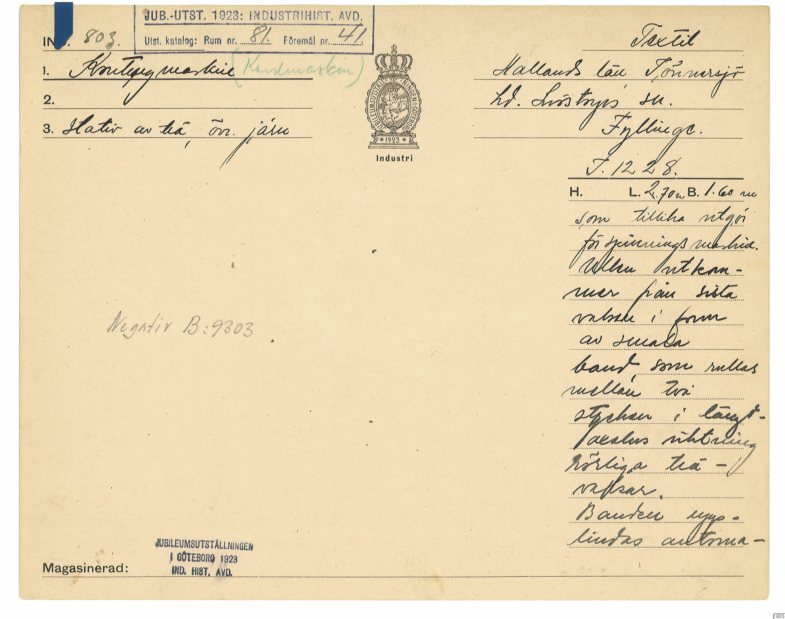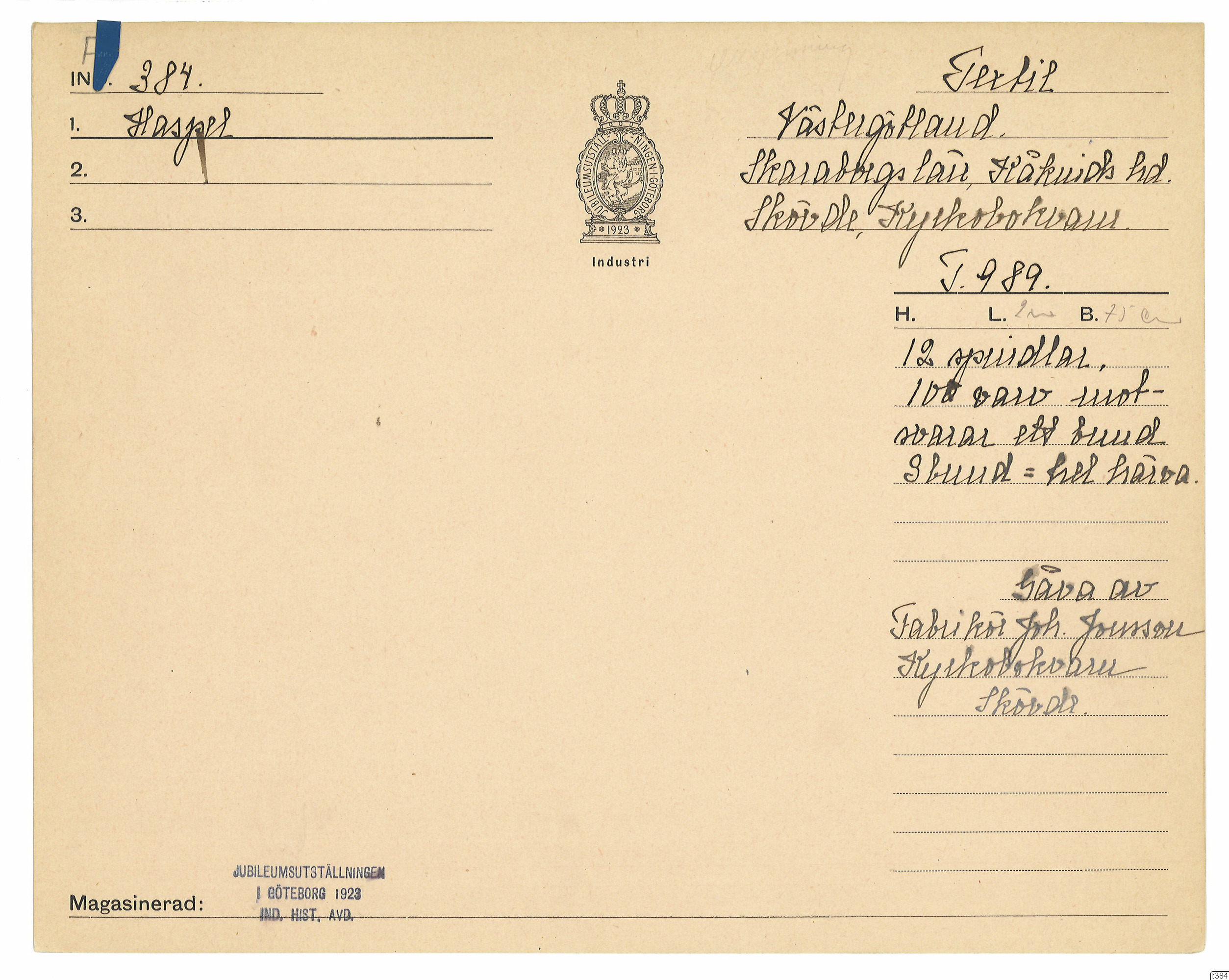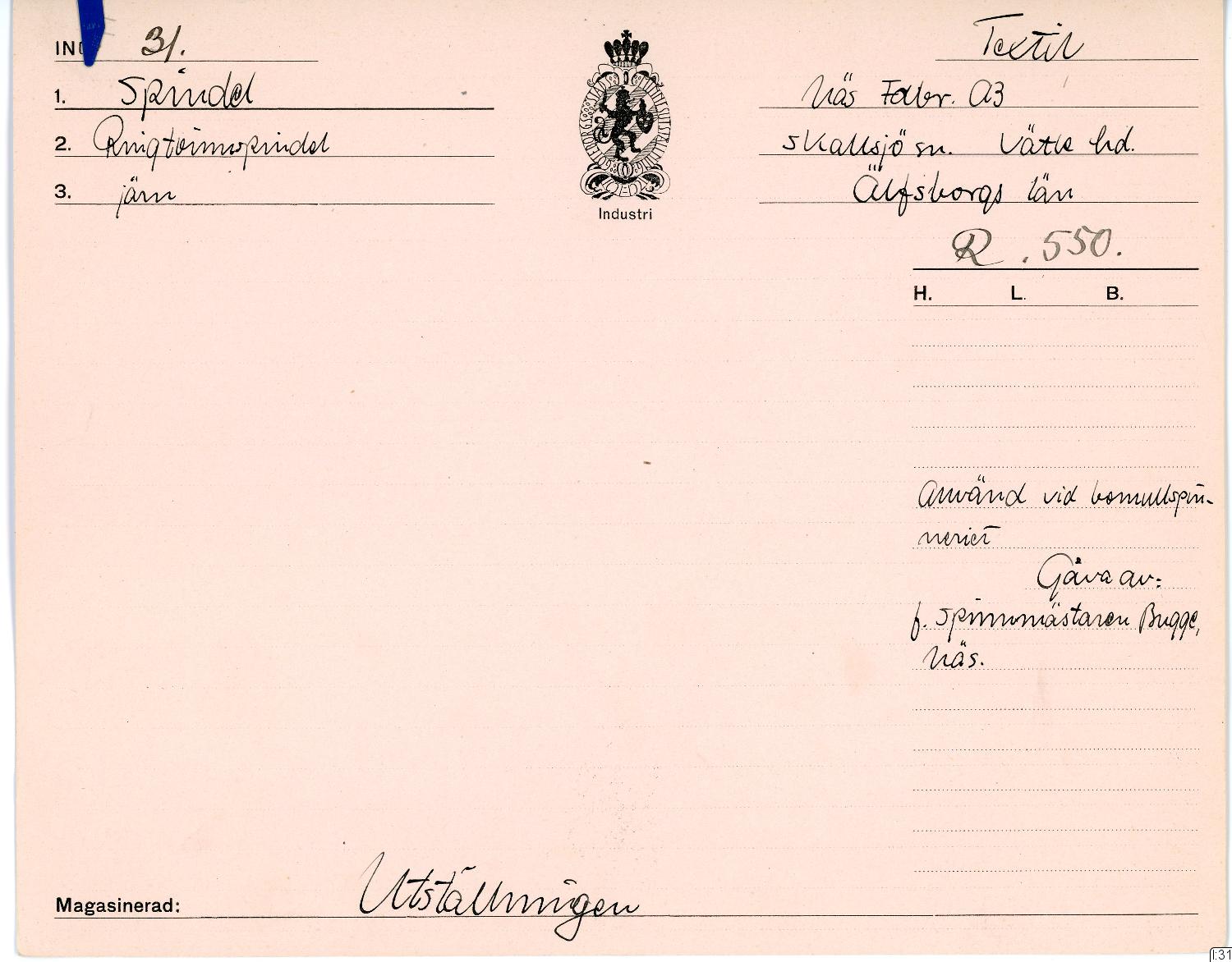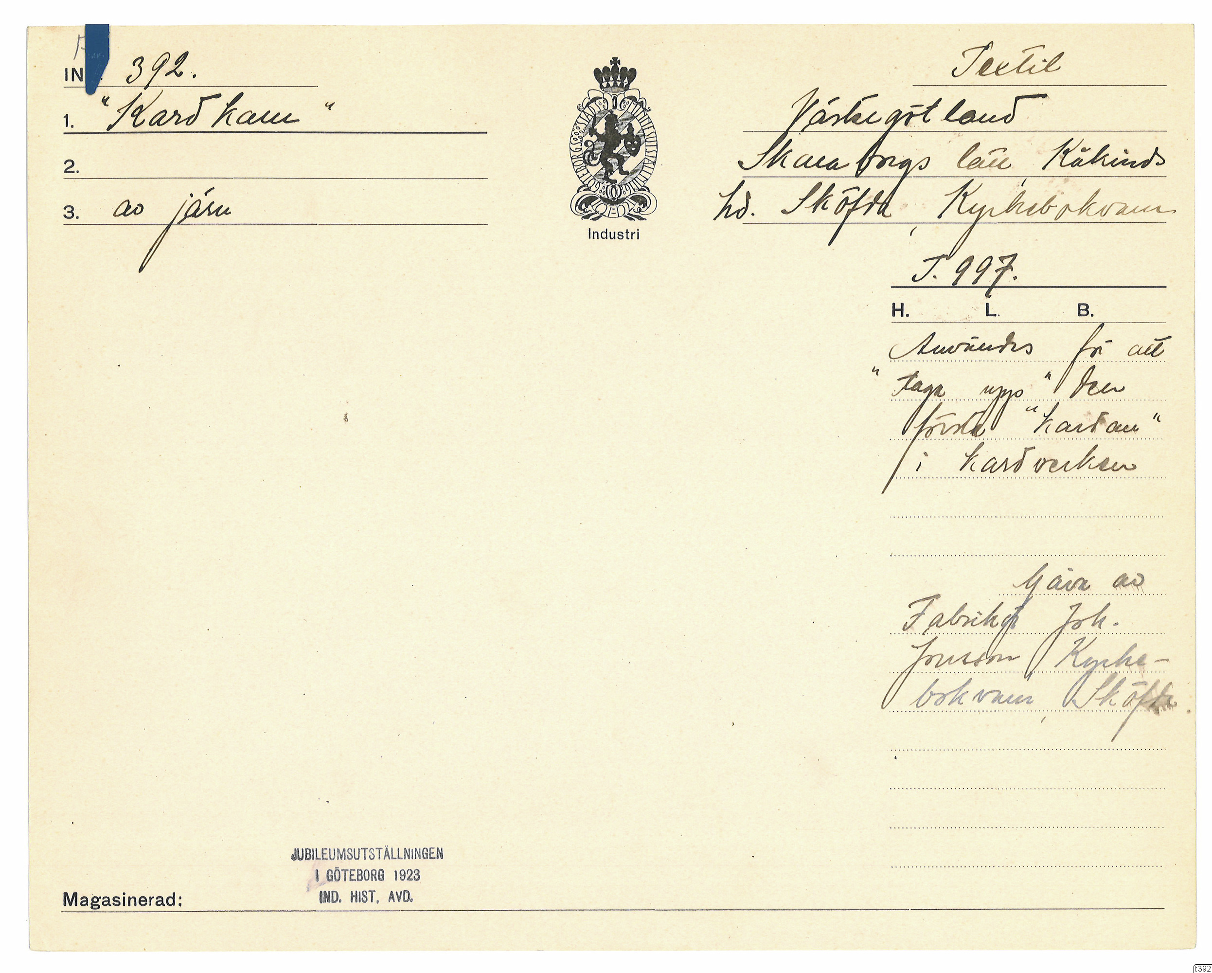 GIM katalogkort Industri 15: Textilindustri I :: kapsel, katalogkort