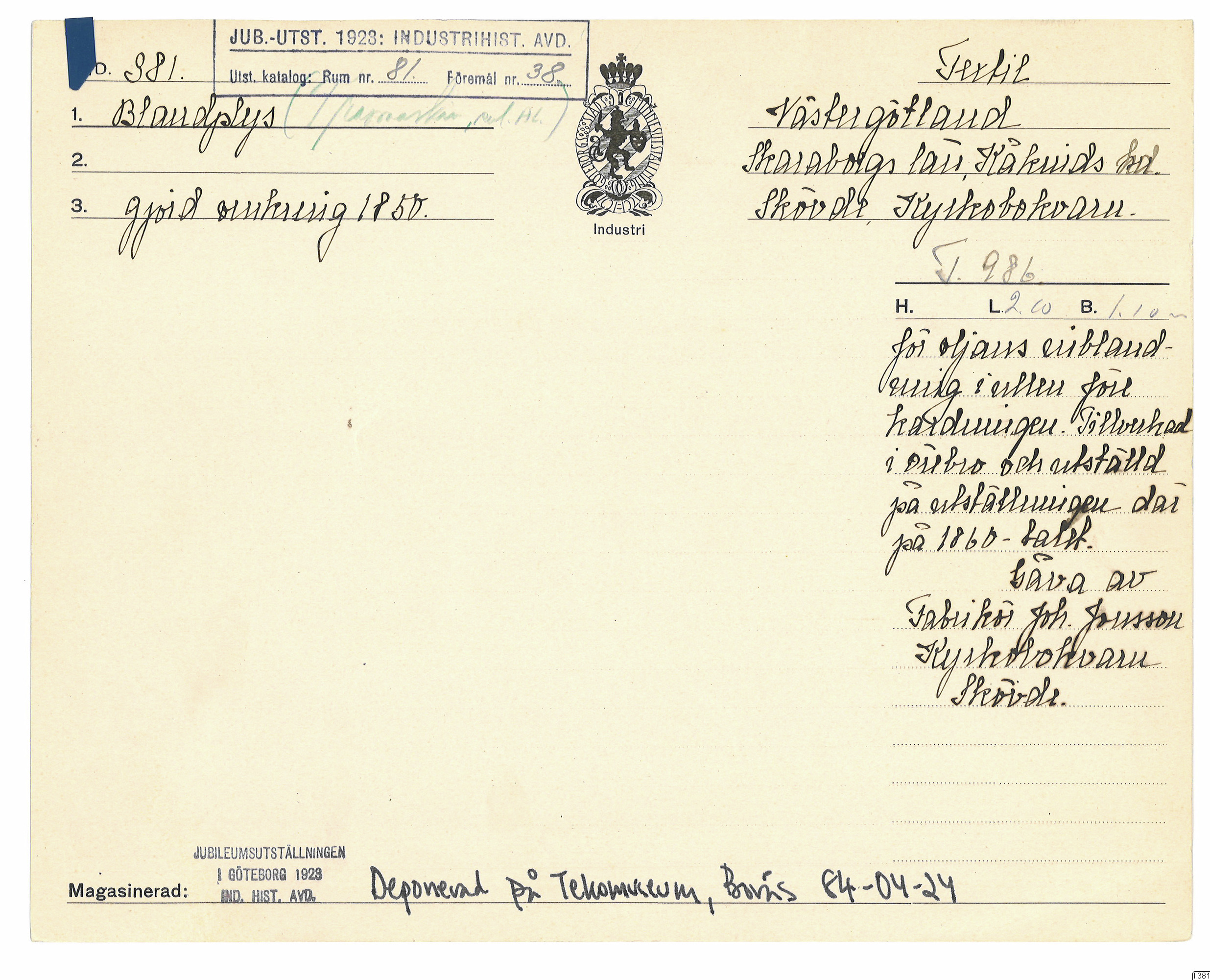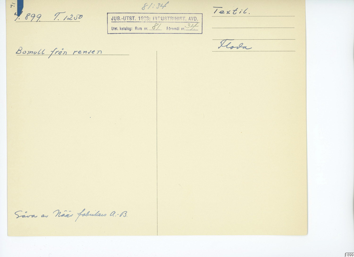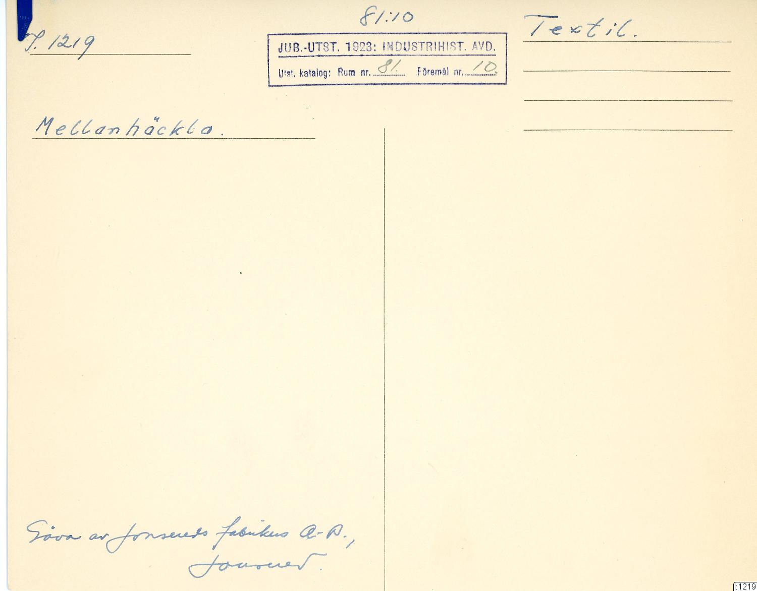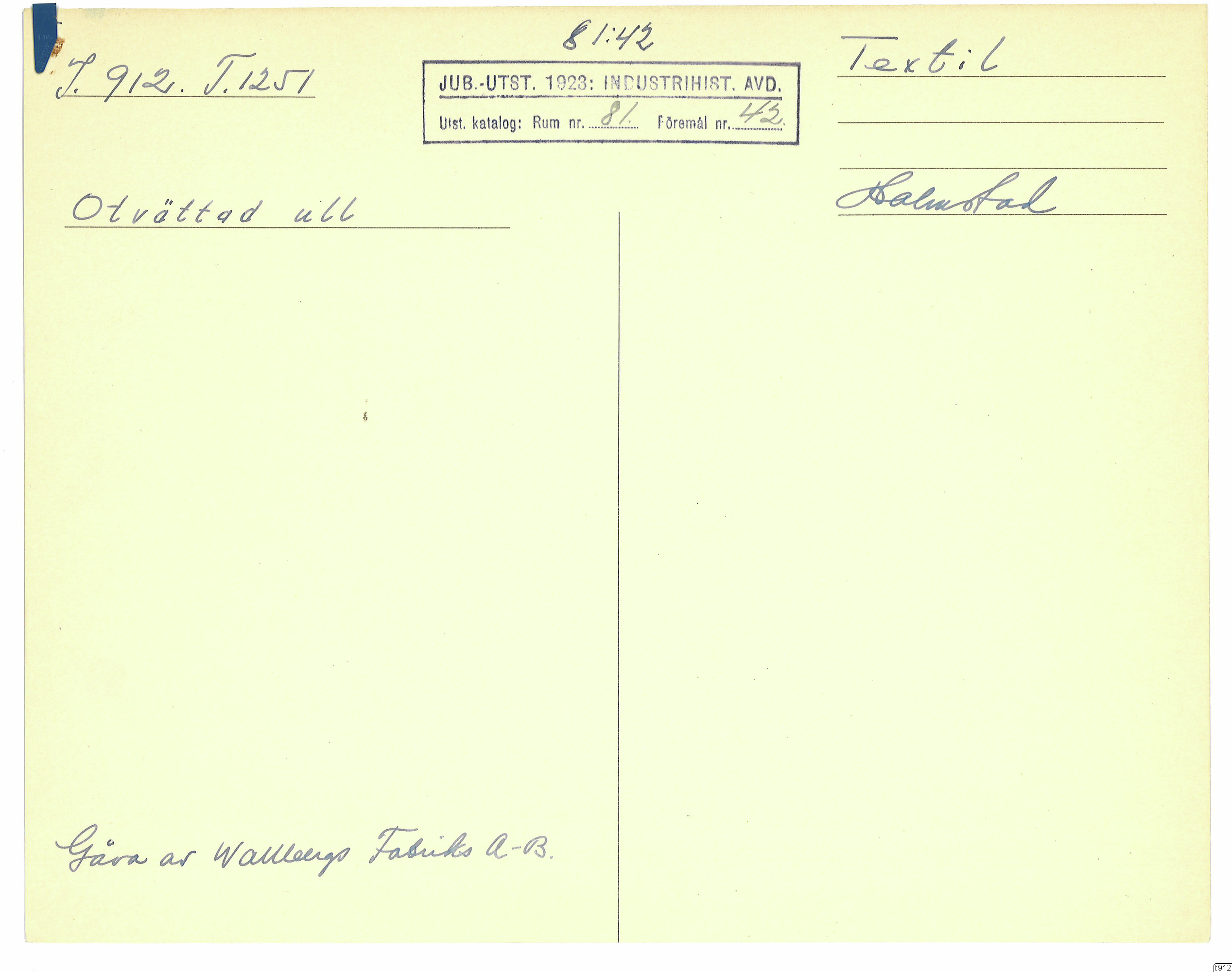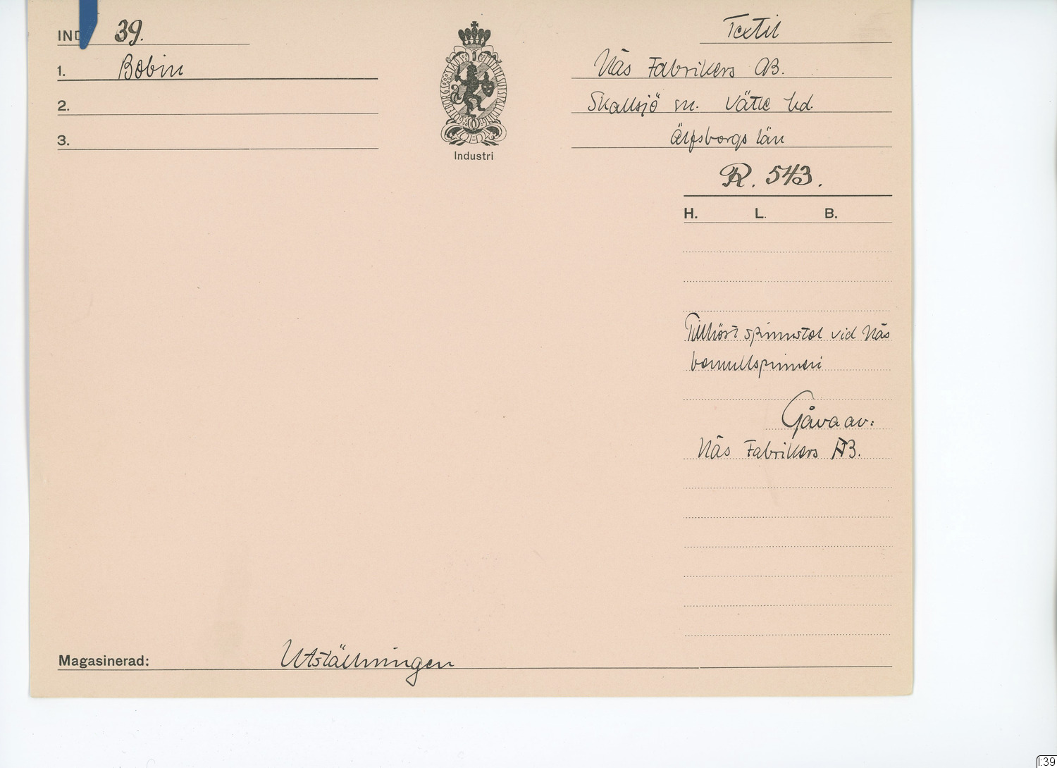 GIM katalogkort Industri 15: Textilindustri I :: kapsel, katalogkort