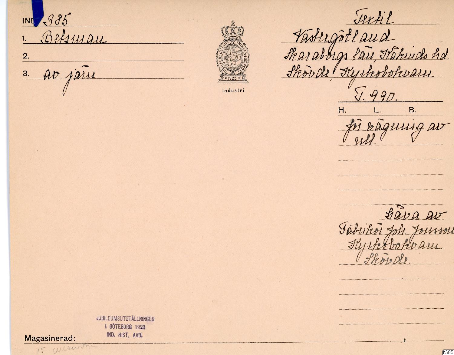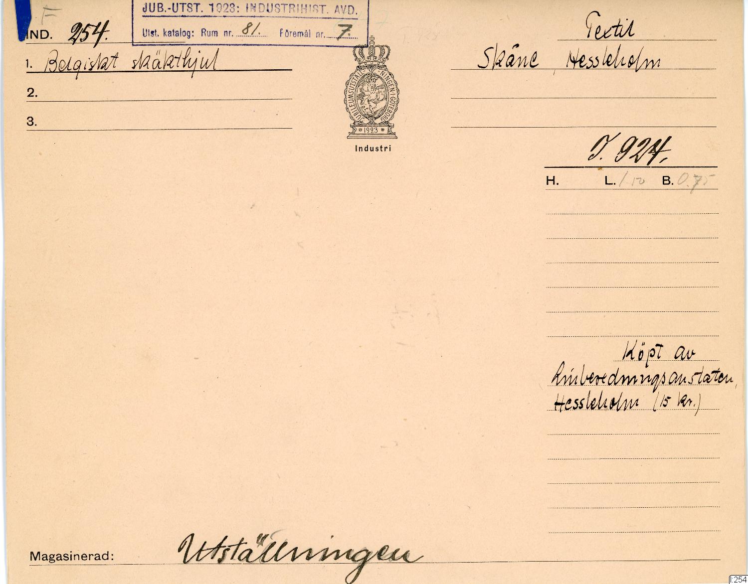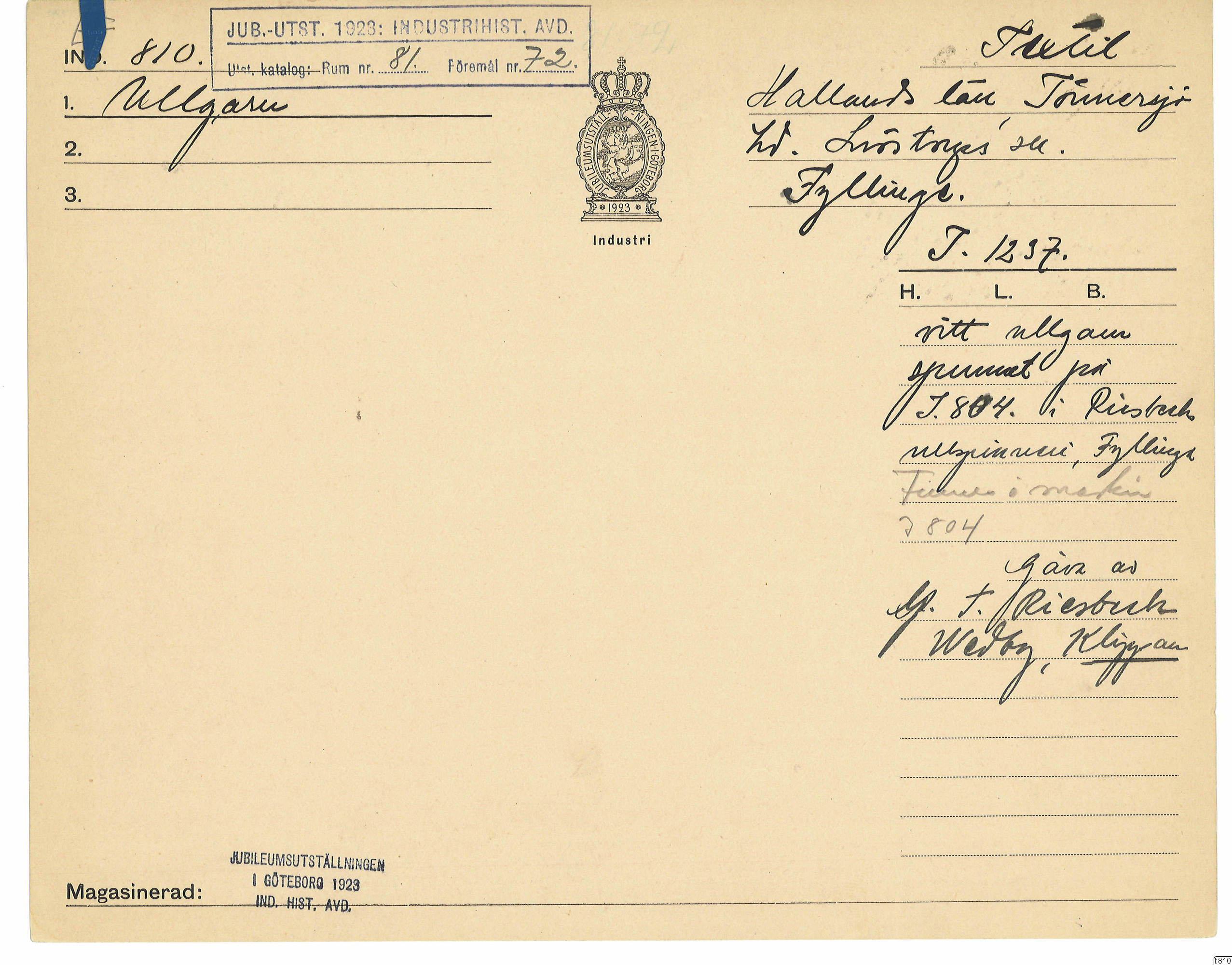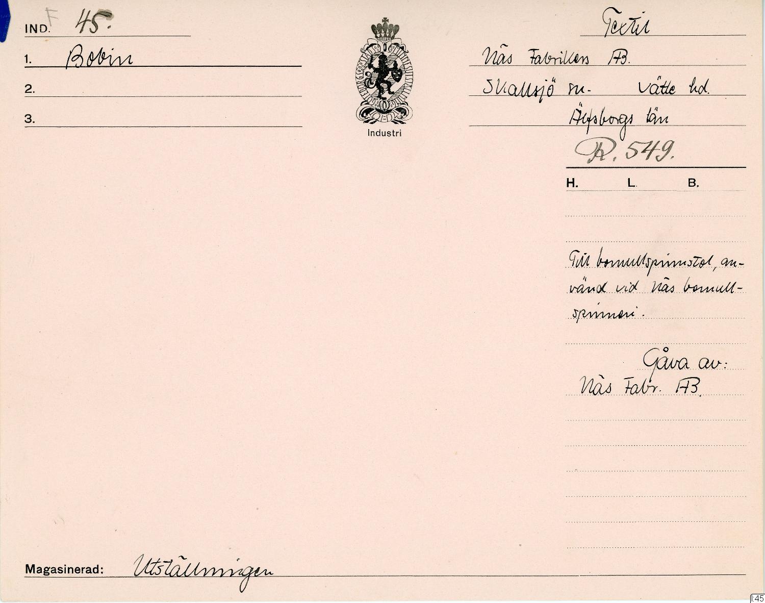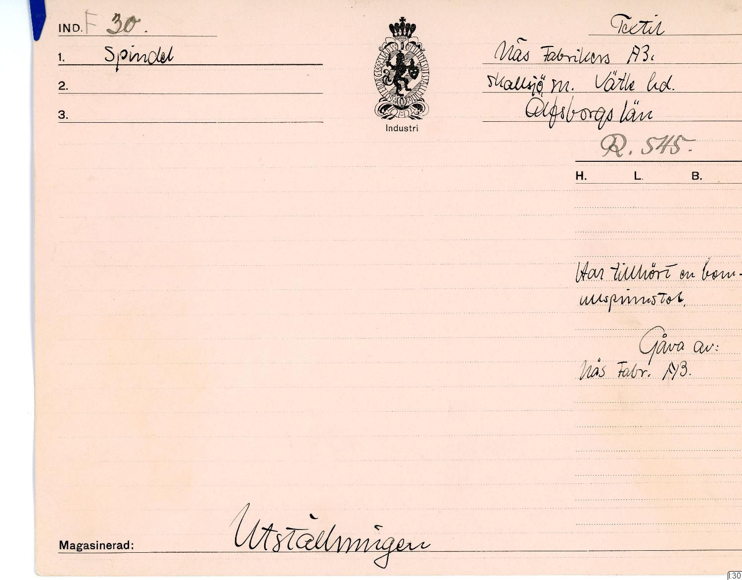 GIM katalogkort Industri 15: Textilindustri I :: kapsel, katalogkort