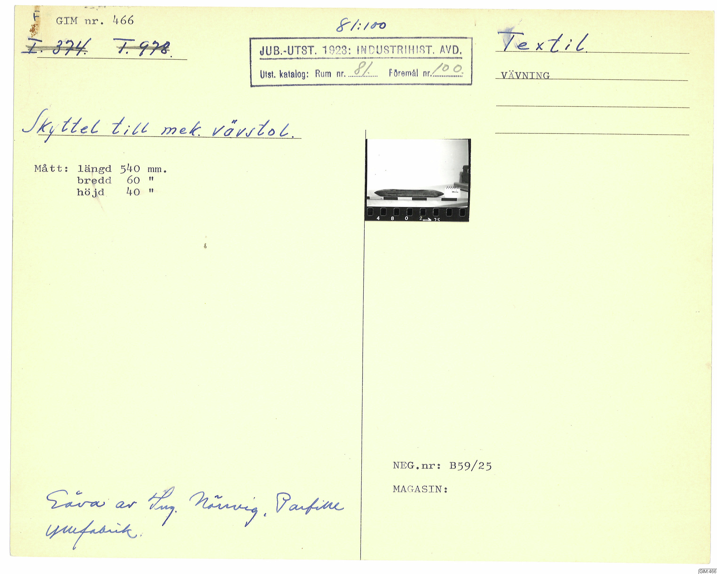 GIM katalogkort Industri 16: Textilindustri II :: kapsel, katalogkort
