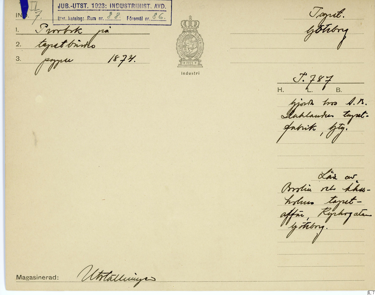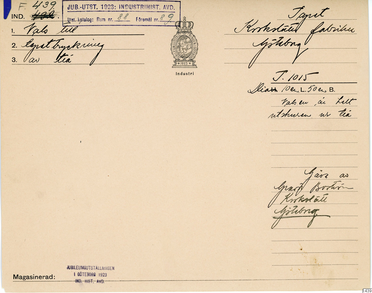 GIM katalogkort Industri 27: Skogsbruk, trä- och tapetindustri 2 :: kapsel, katalogkort