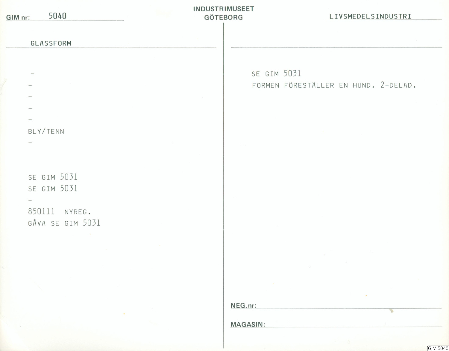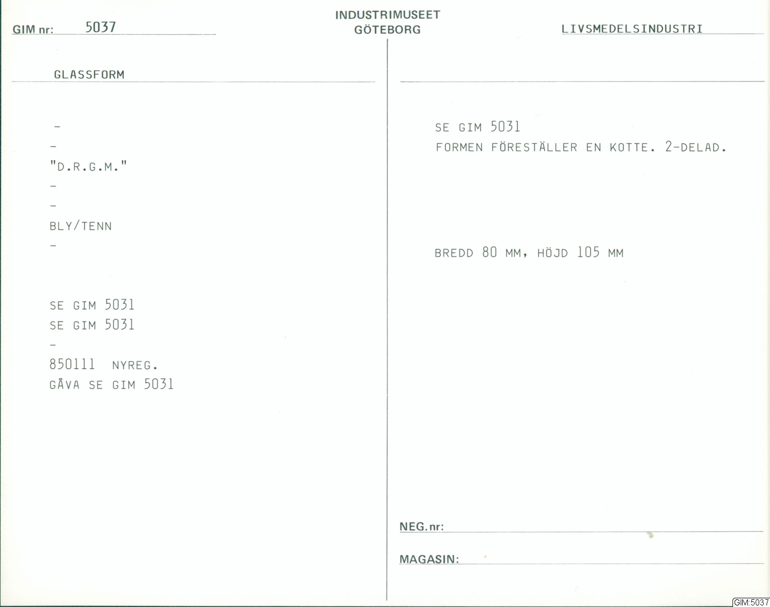 GIM katalogkort Livsmedelsindustri :: kapsel, katalogkort