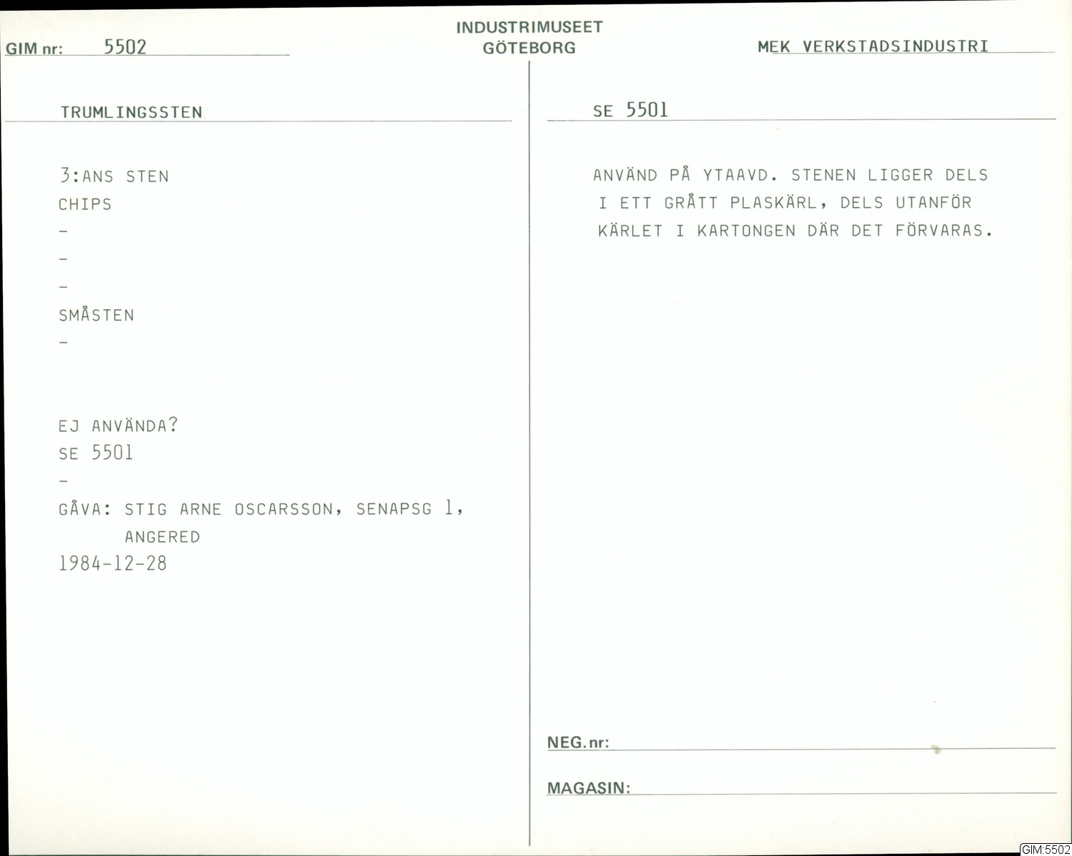 GIM katalogkort Mekanisk verkstadsindustri 2 :: kapsel, katalogkort