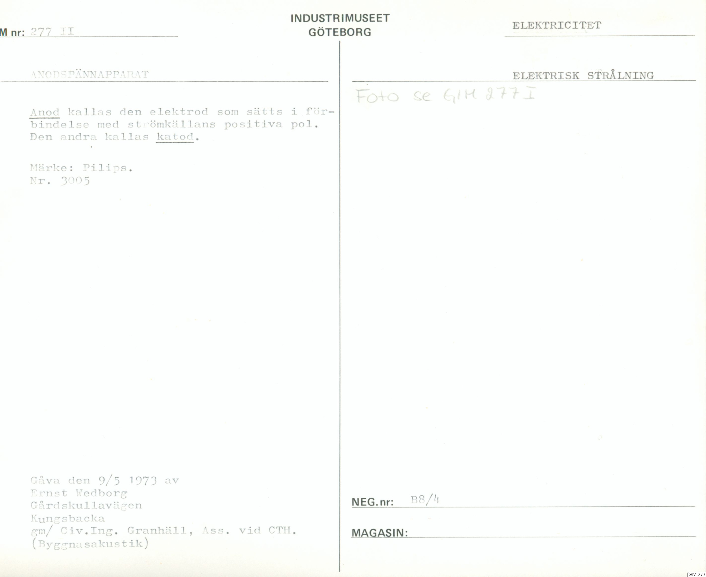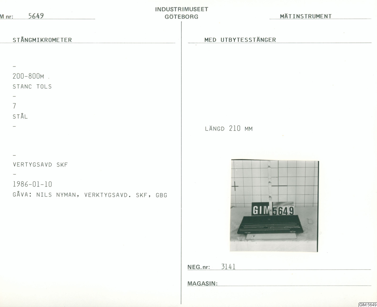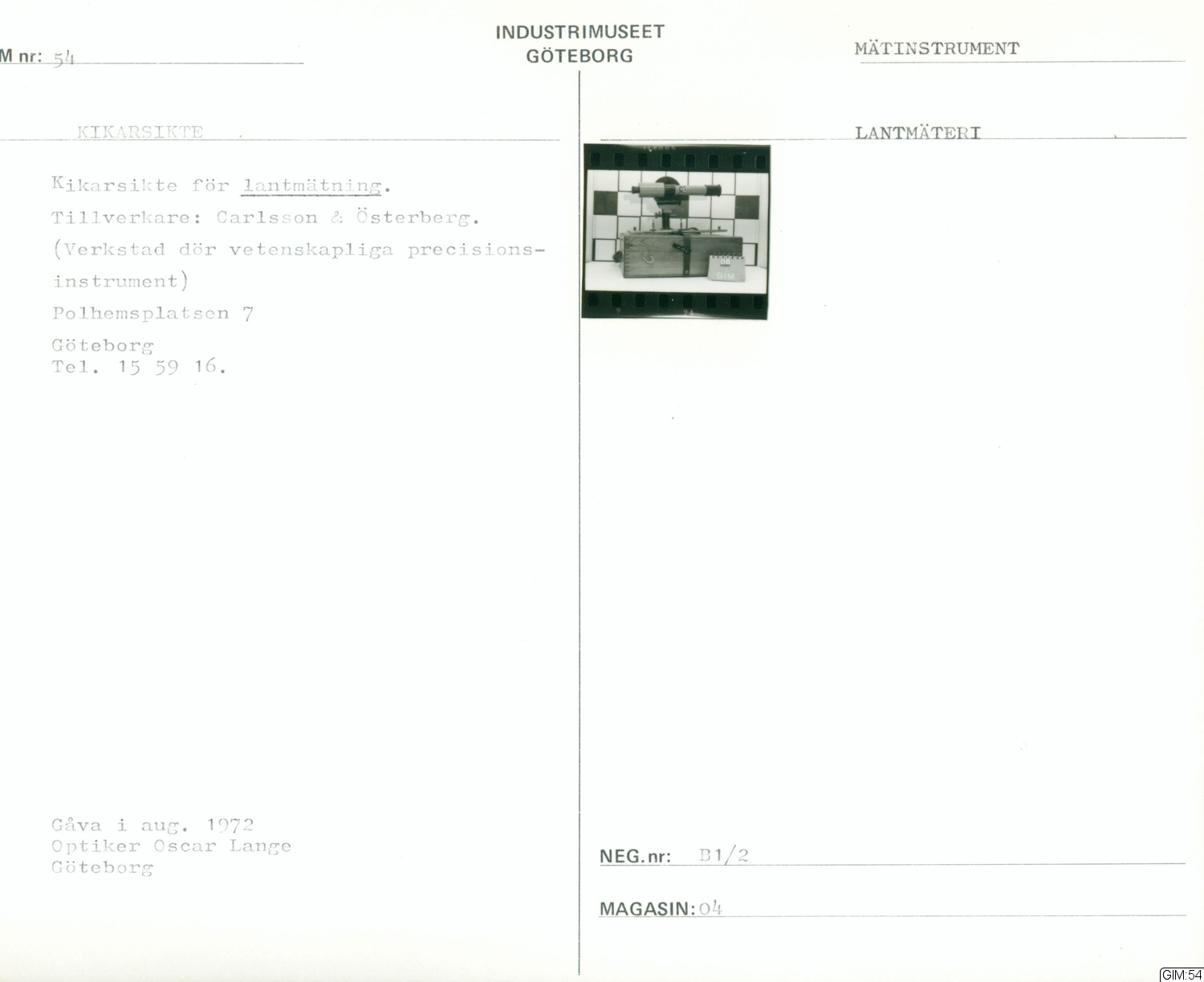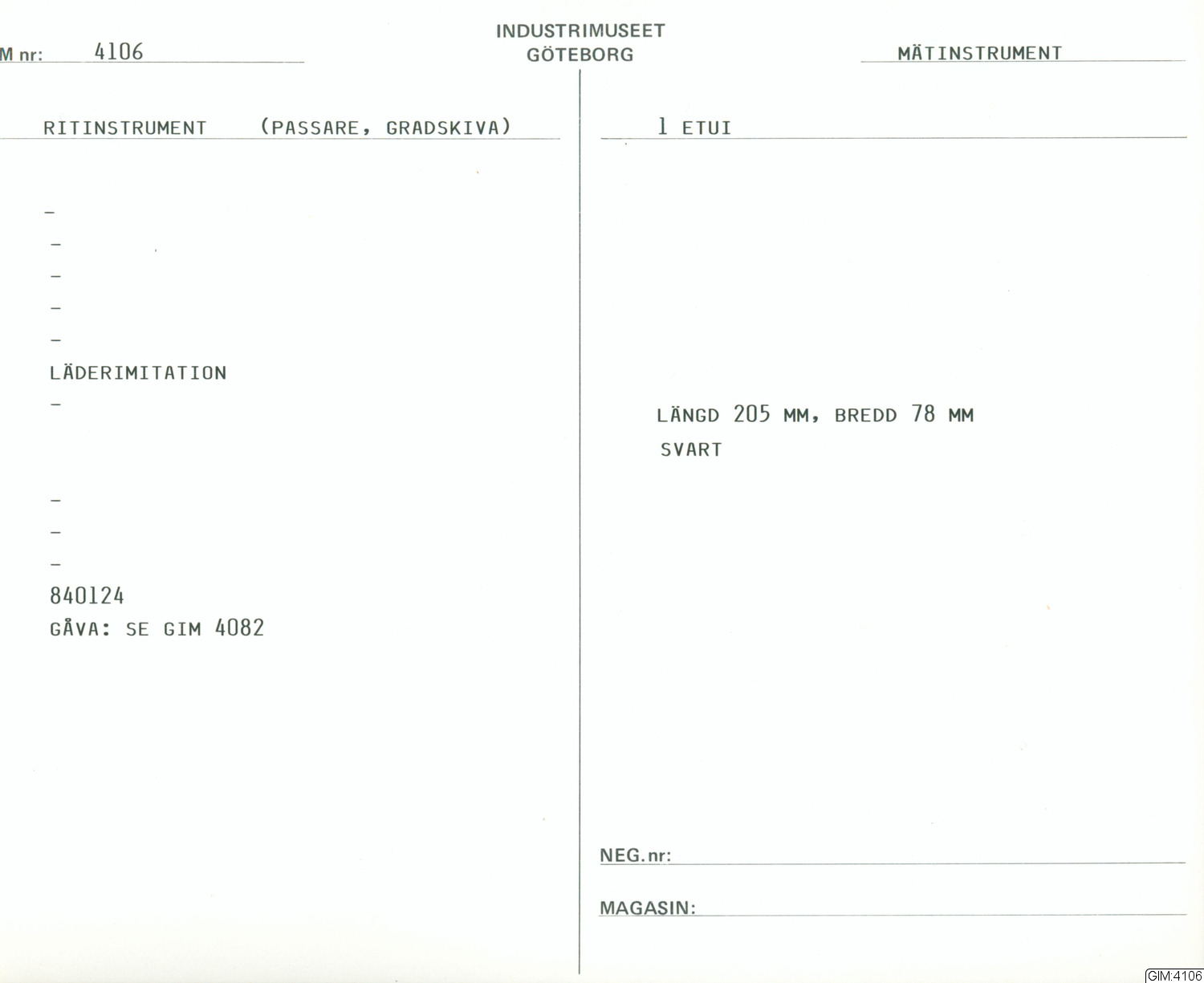 GIM katalogkort Mätinstrument :: kapsel, katalogkort