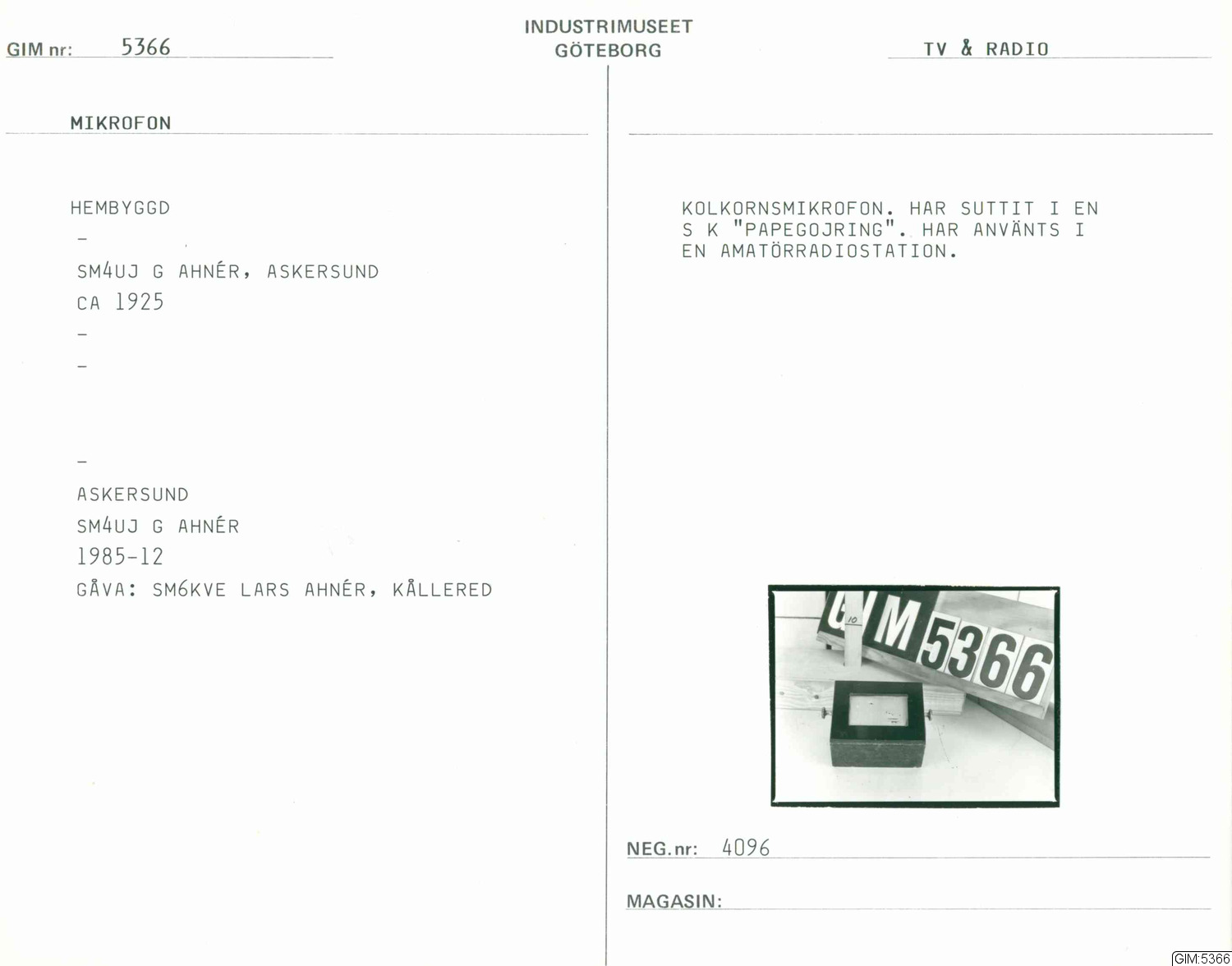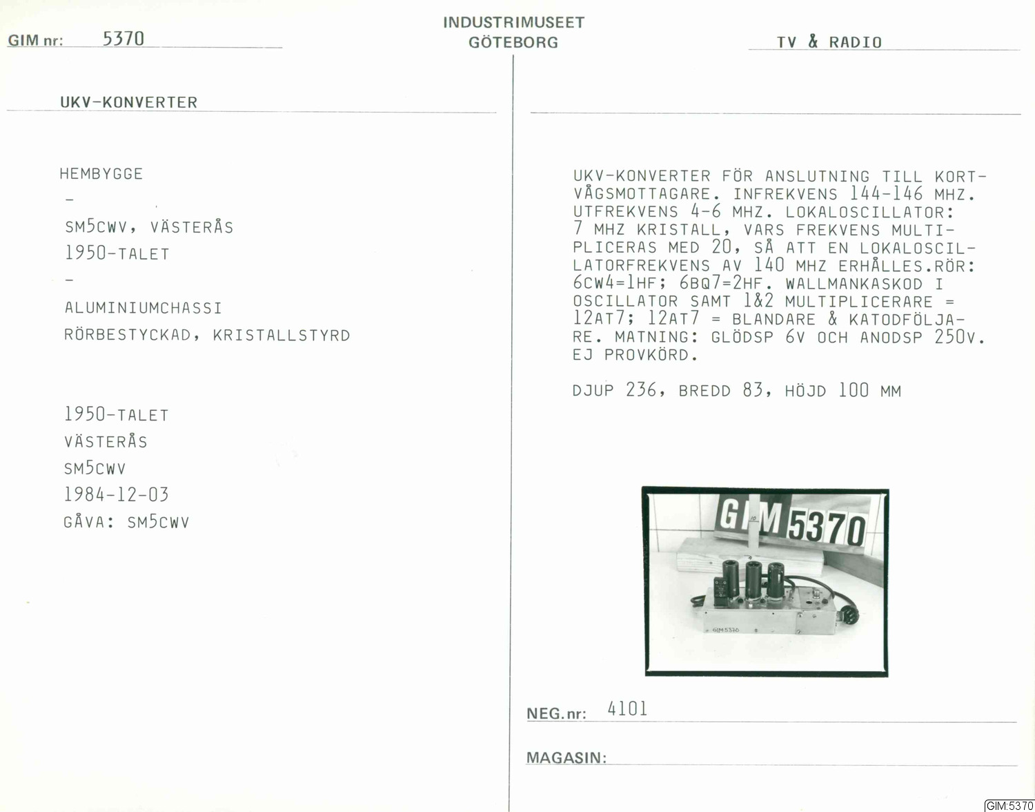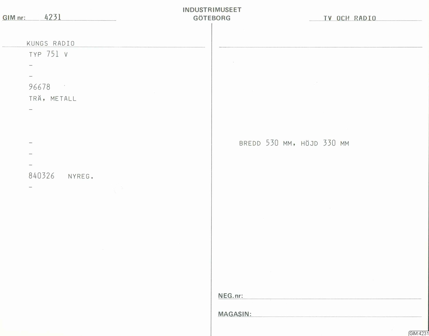 GIM katalogkort Radioteknik :: kapsel, katalogkort