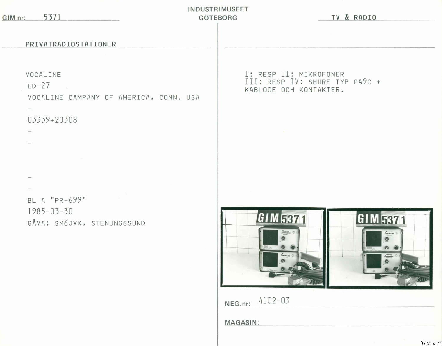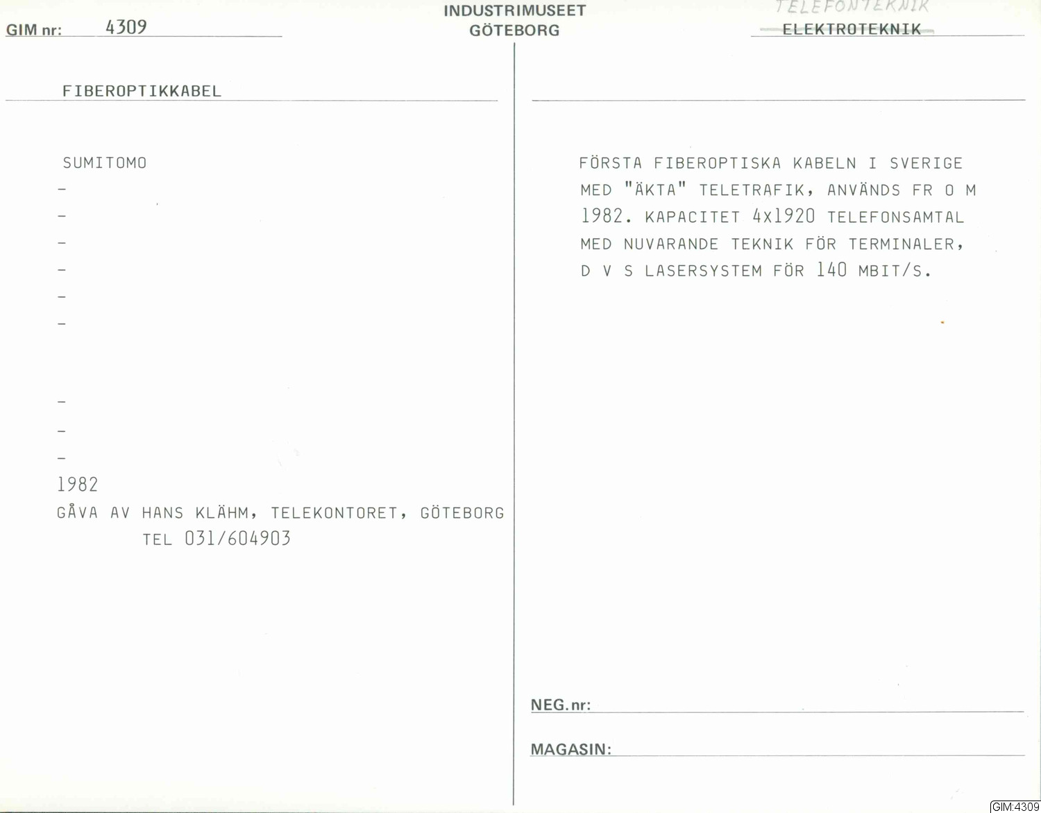 GIM katalogkort Telefonteknik, television