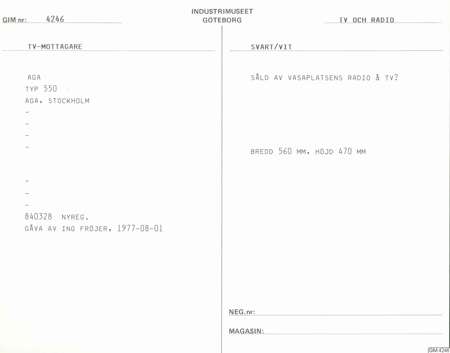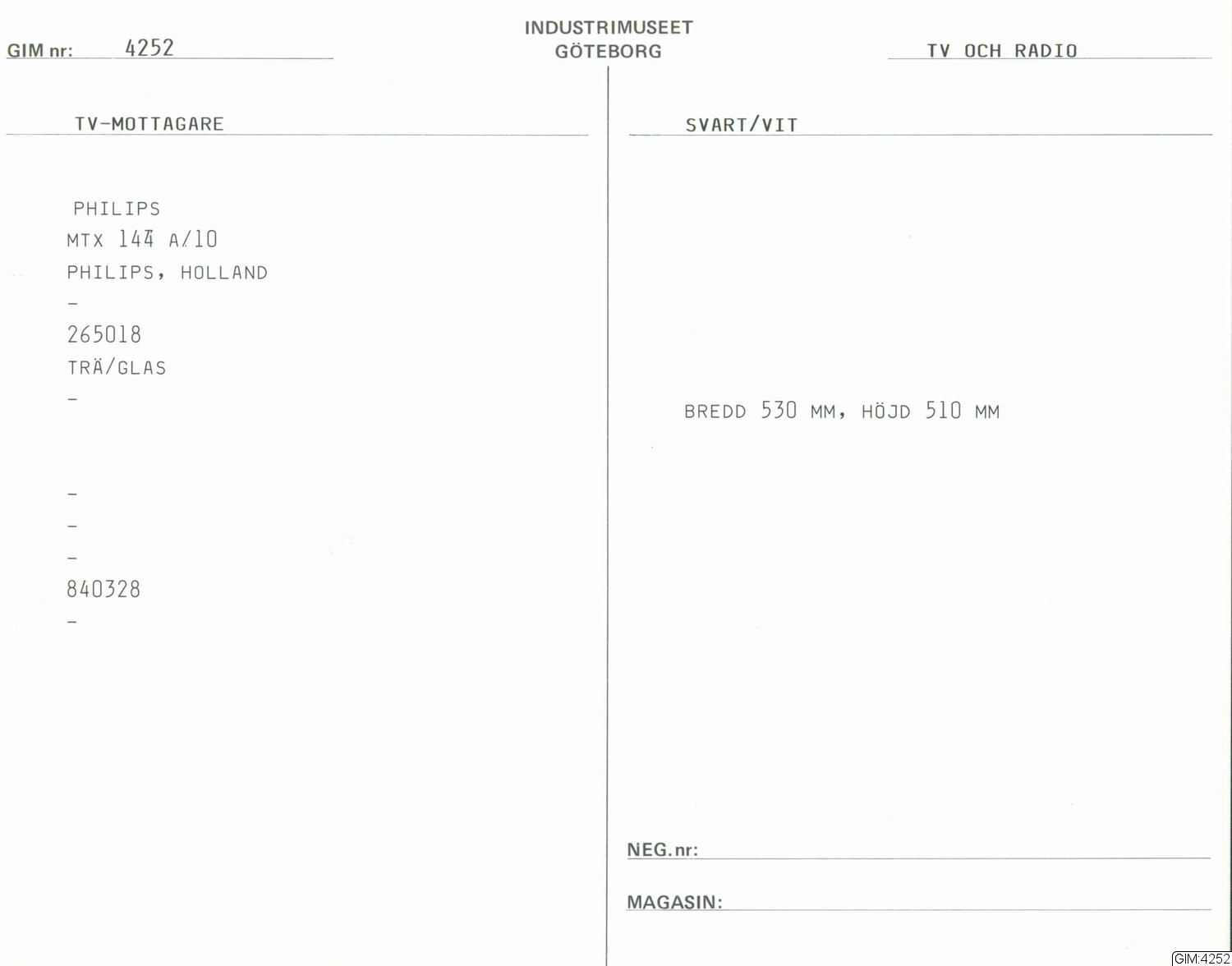 GIM katalogkort Telefonteknik, Television