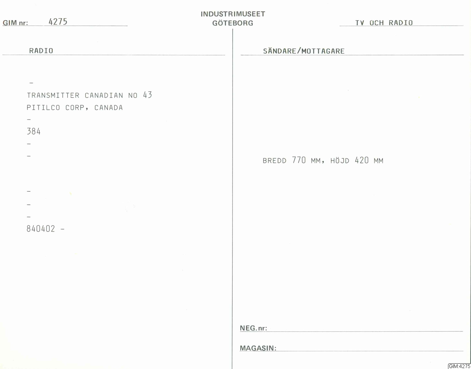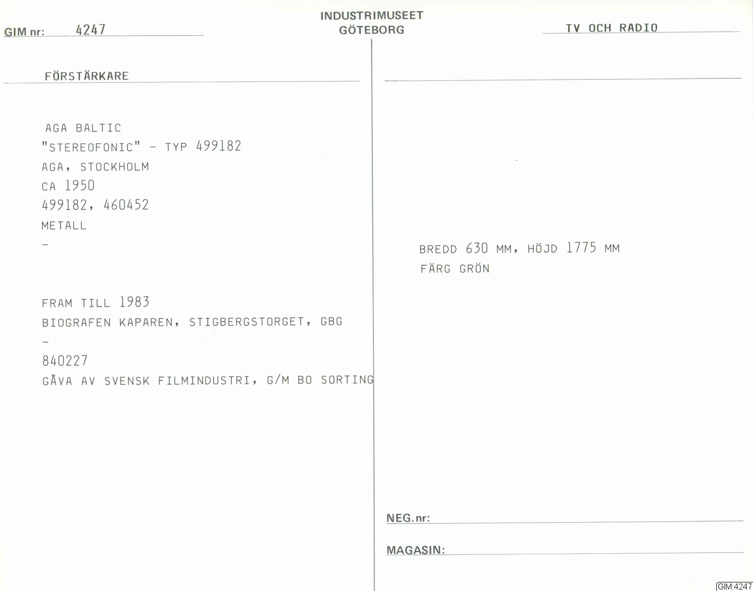GIM katalogkort Telefonteknik, television :: kapsel, katalogkort