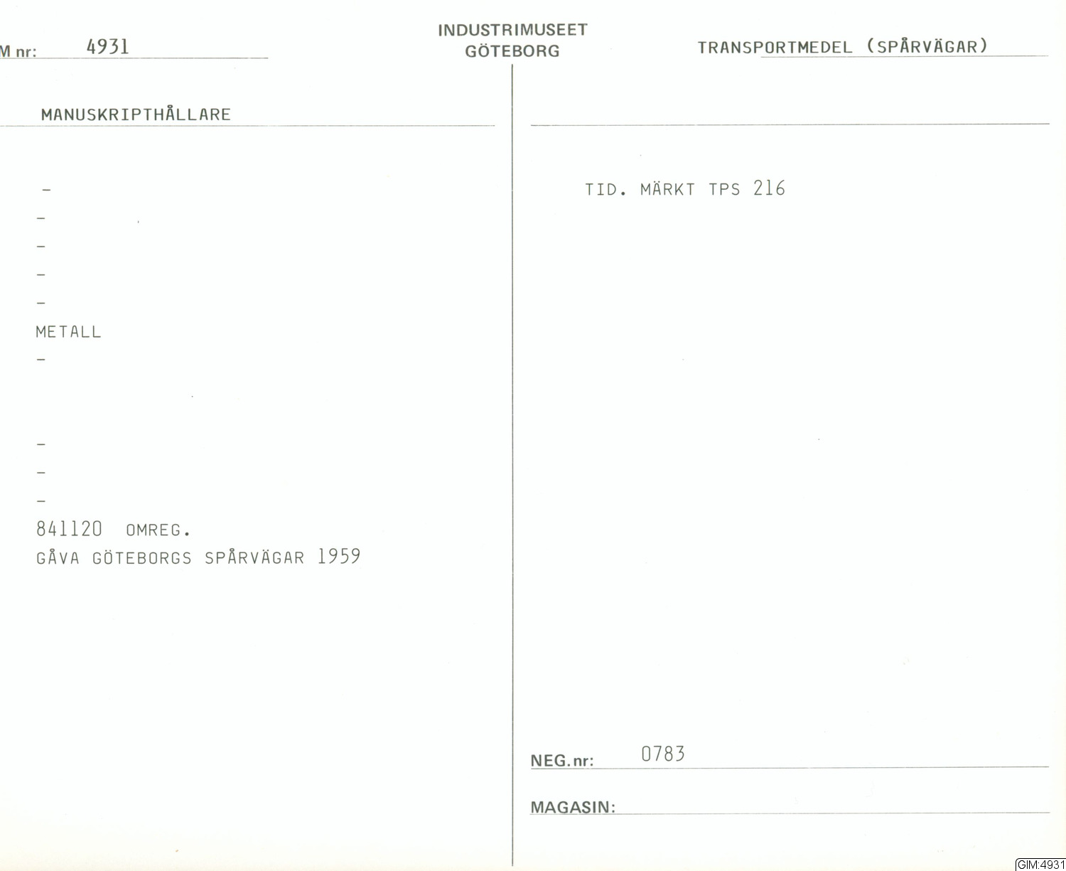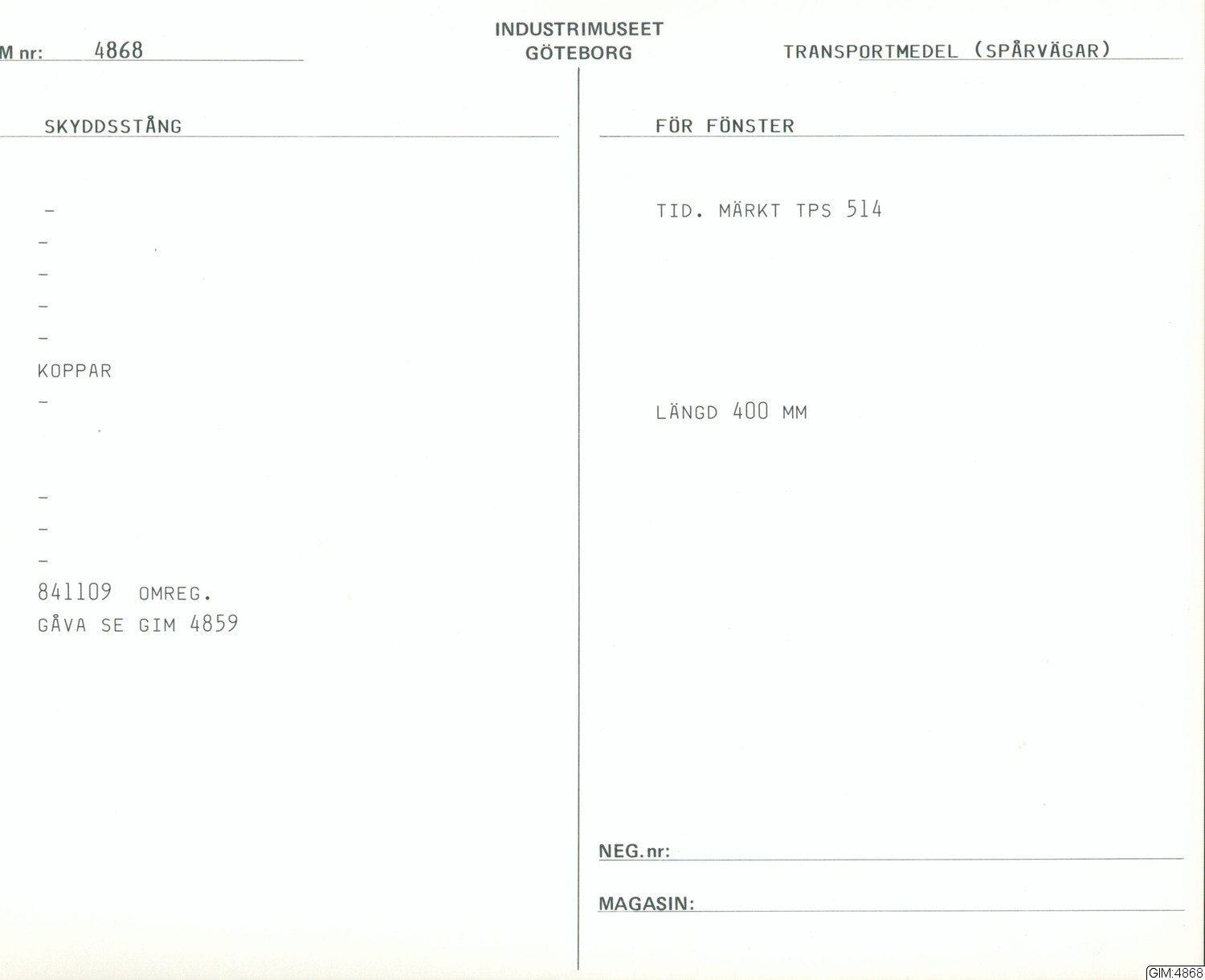 GIM katalogkort Transportmedel: Spårvägar 1 :: kapsel, katalogkort