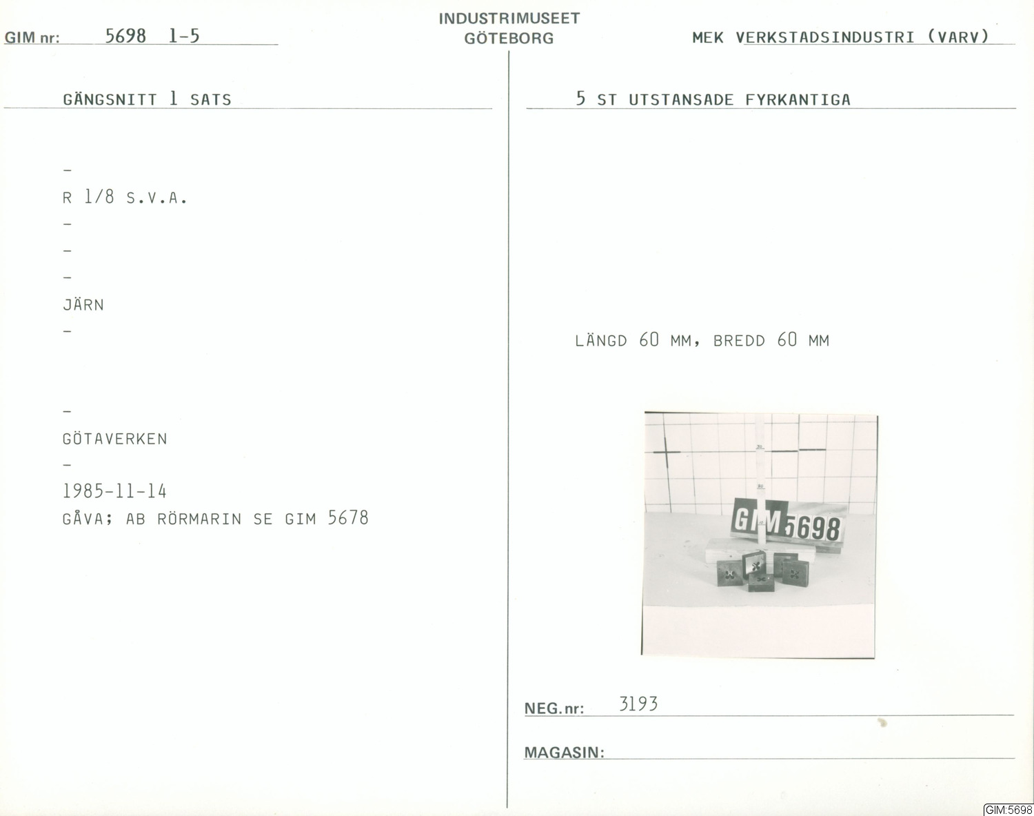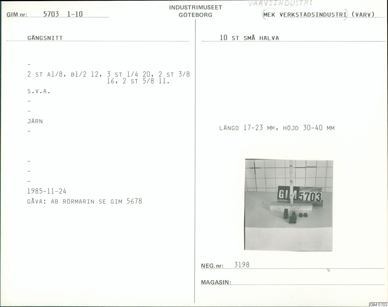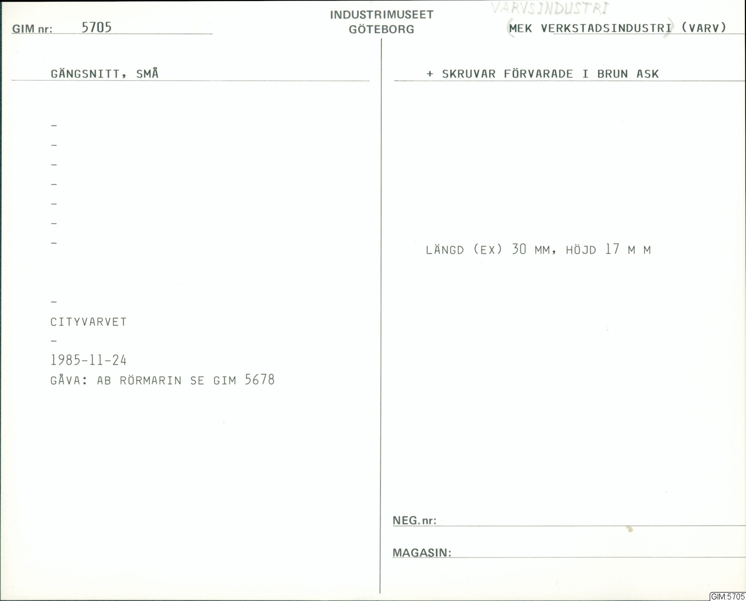 GIM katalogkort Varvsindustri :: kapsel, katalogkort