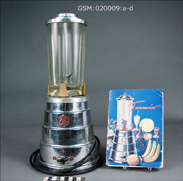 - en tidig form av matberedare där motorn sitter i foten ovanpå vilken glasbägare med rotoknivar placeras på motoraxeln. Reglage på sidan för hel- och halvfart samt stopp.