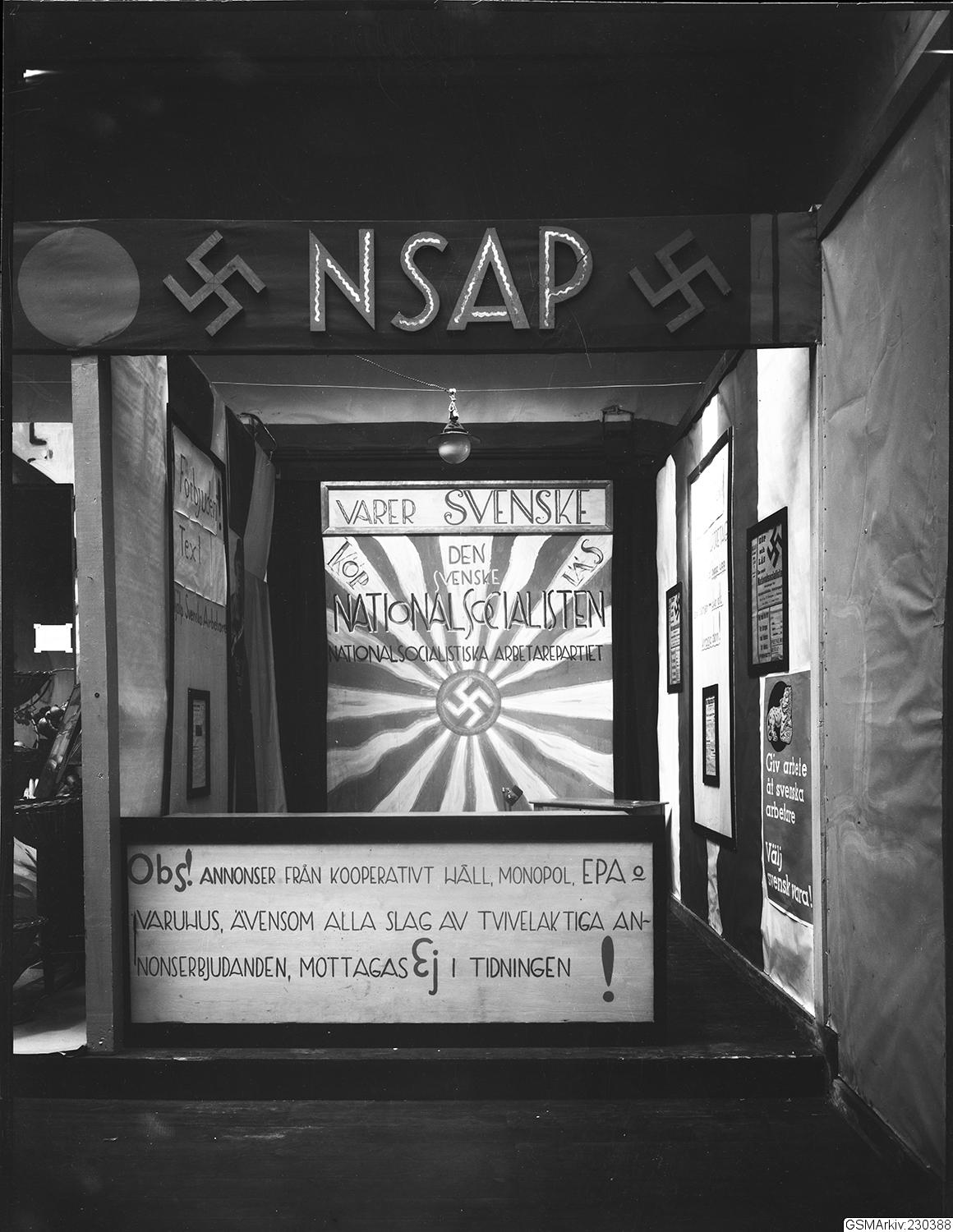 - Monter på Svenska Mässan, utställare Svenska Nationalsocialistiska Frihetsförbundet med tidningen Nationalsocialisten.