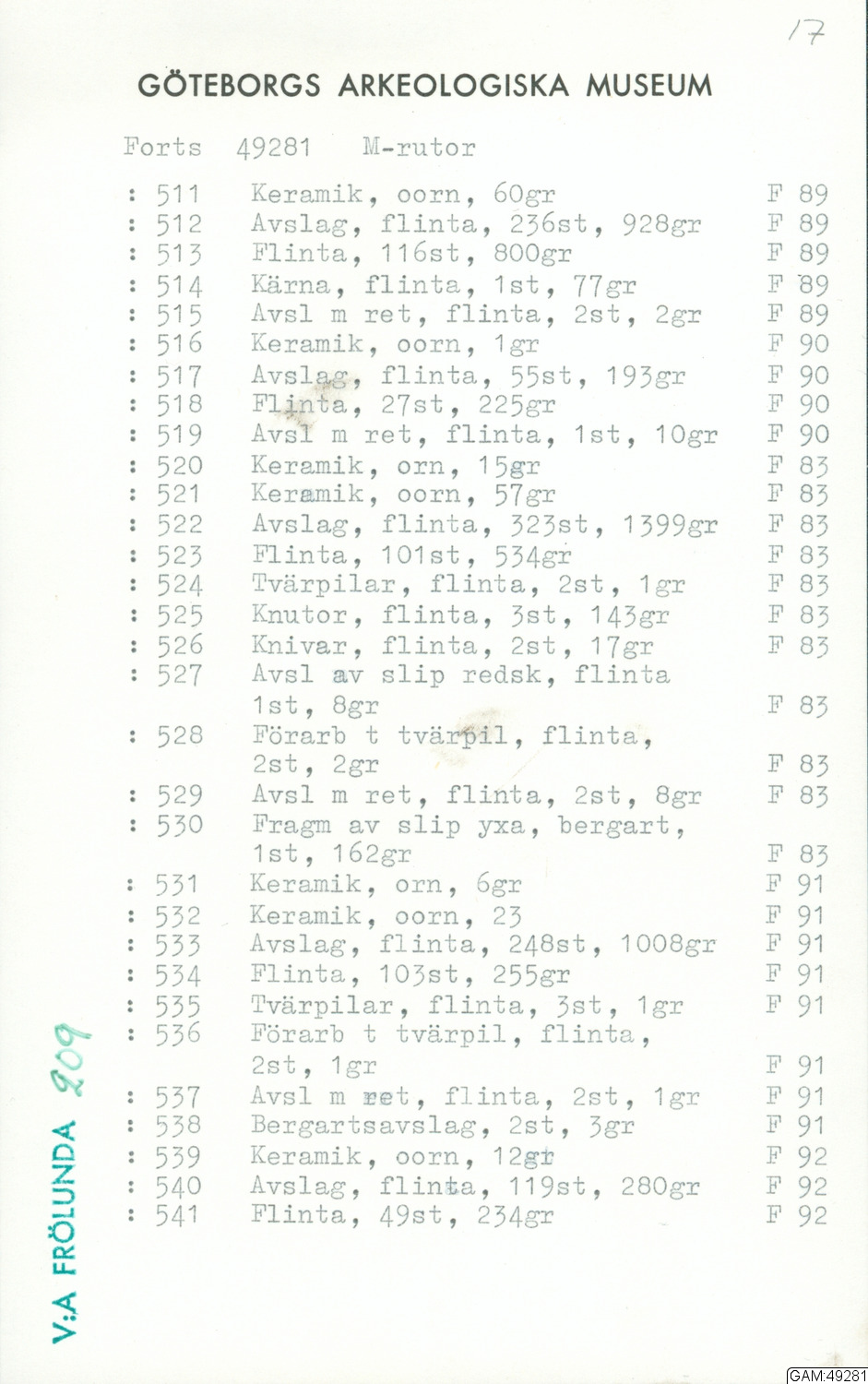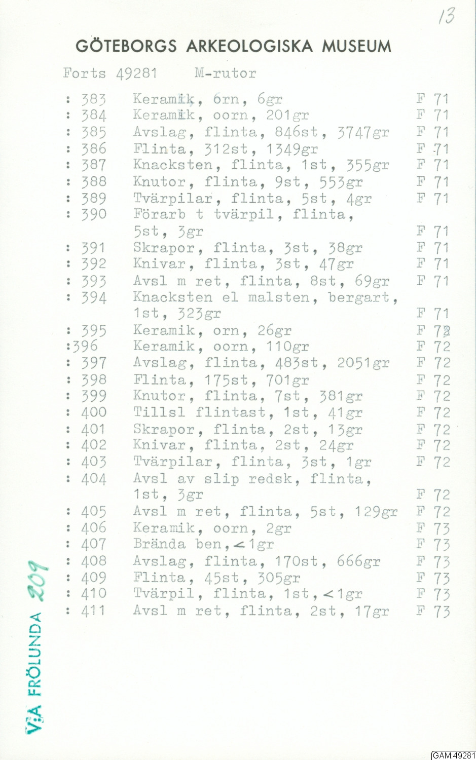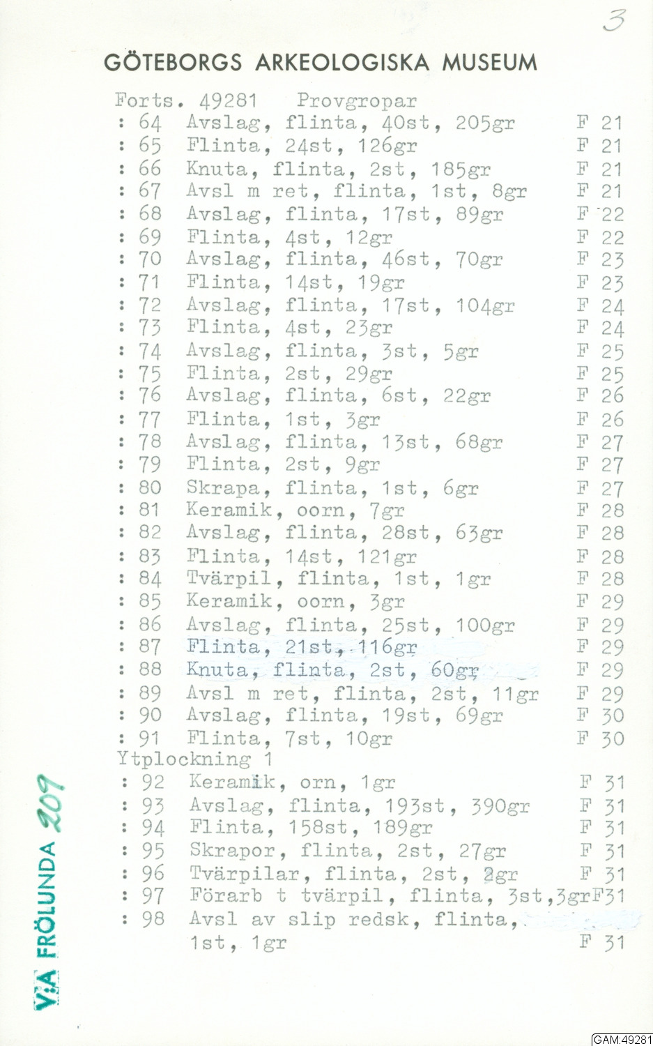 GAM:49281 :: grävning, utgrävningar, utgrävning, slutundersökning [fältark]