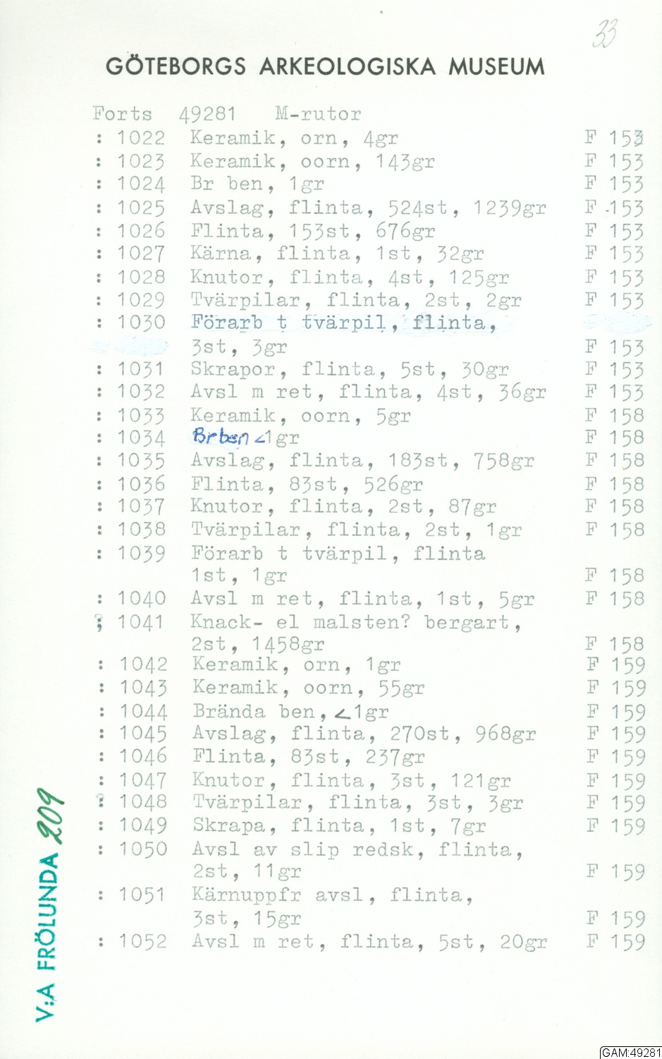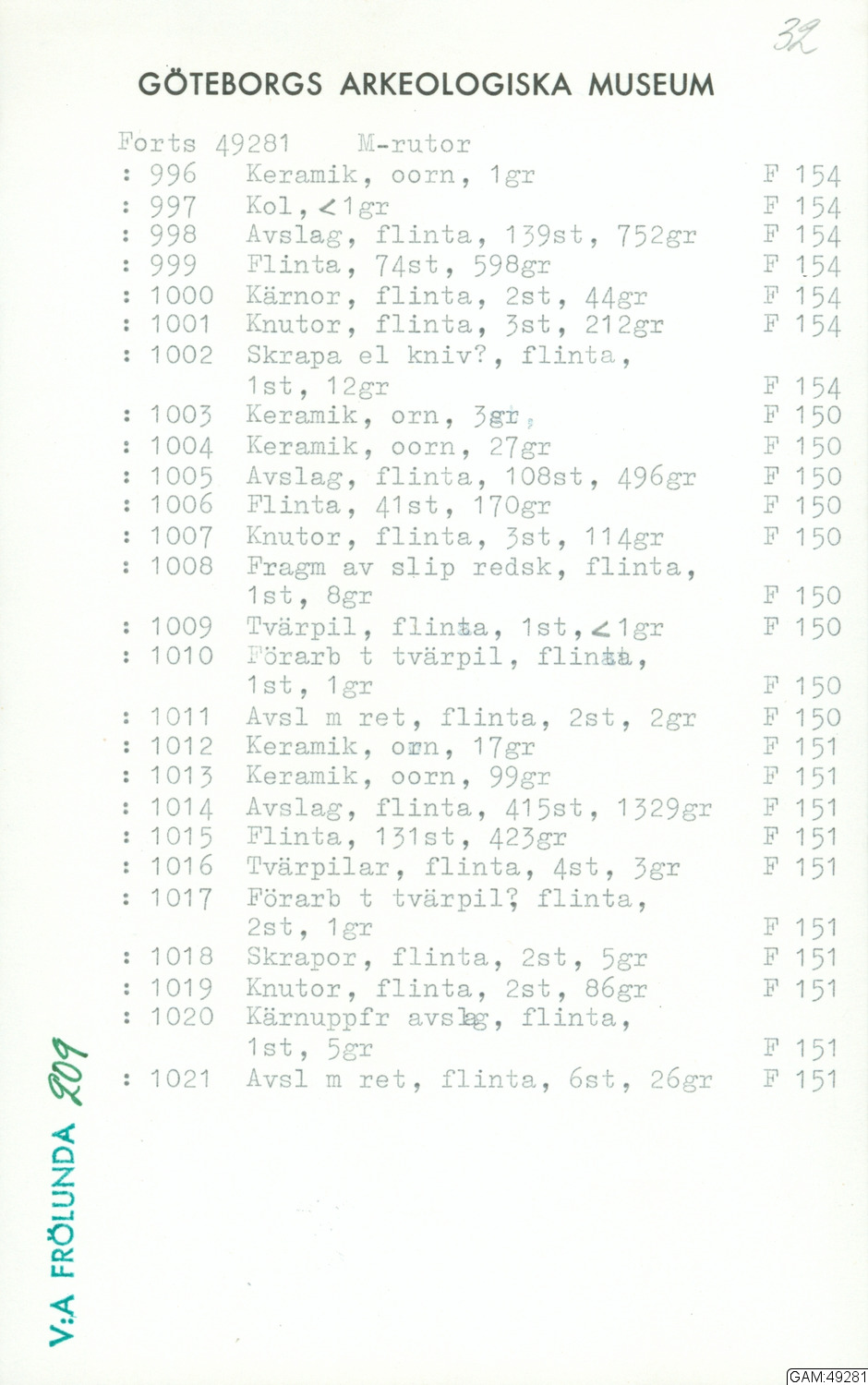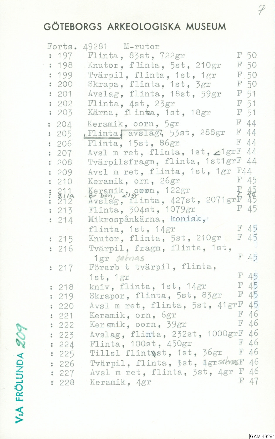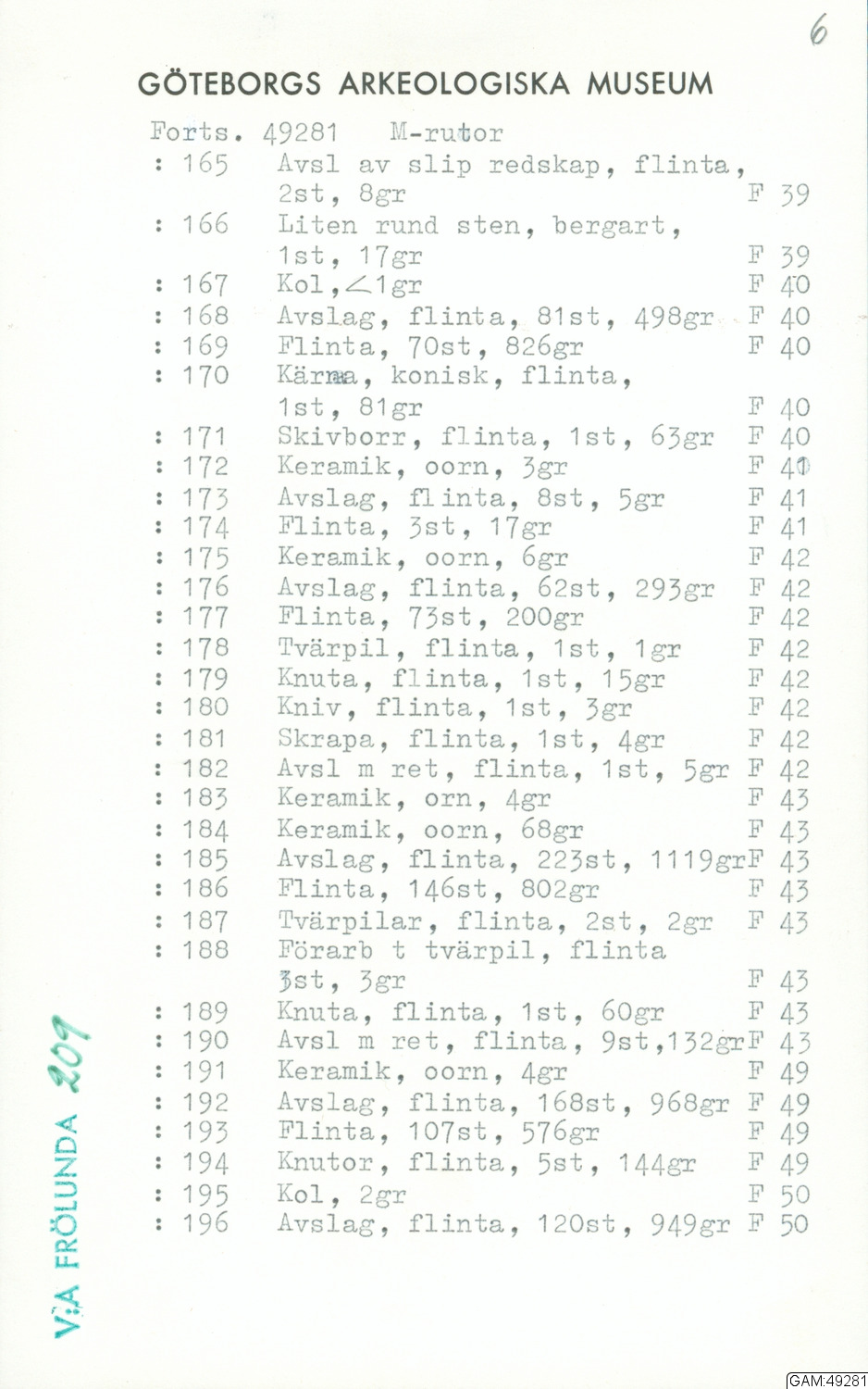 GAM:49281 :: grävning, utgrävningar, utgrävning, slutundersökning [fältark]