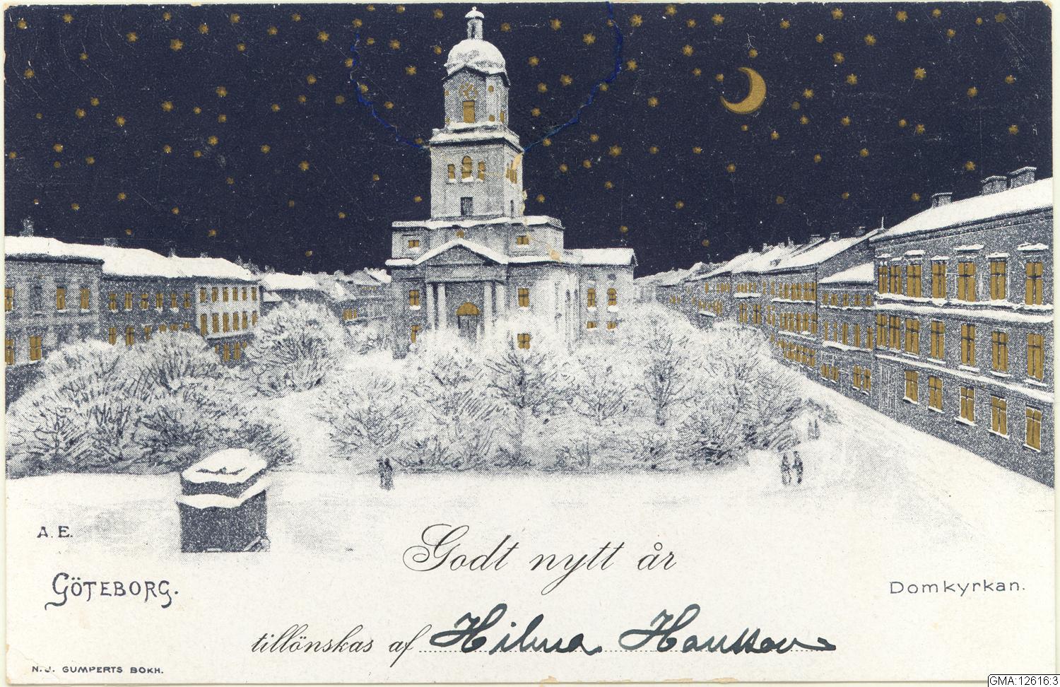 - Nyårshälsning till Groshandl. Herr och Fru Wiman, Storgatan 11. 1901.