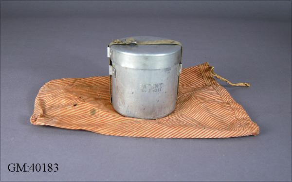 6-9) Ytterbehållare med lock, tygrem och handtag.