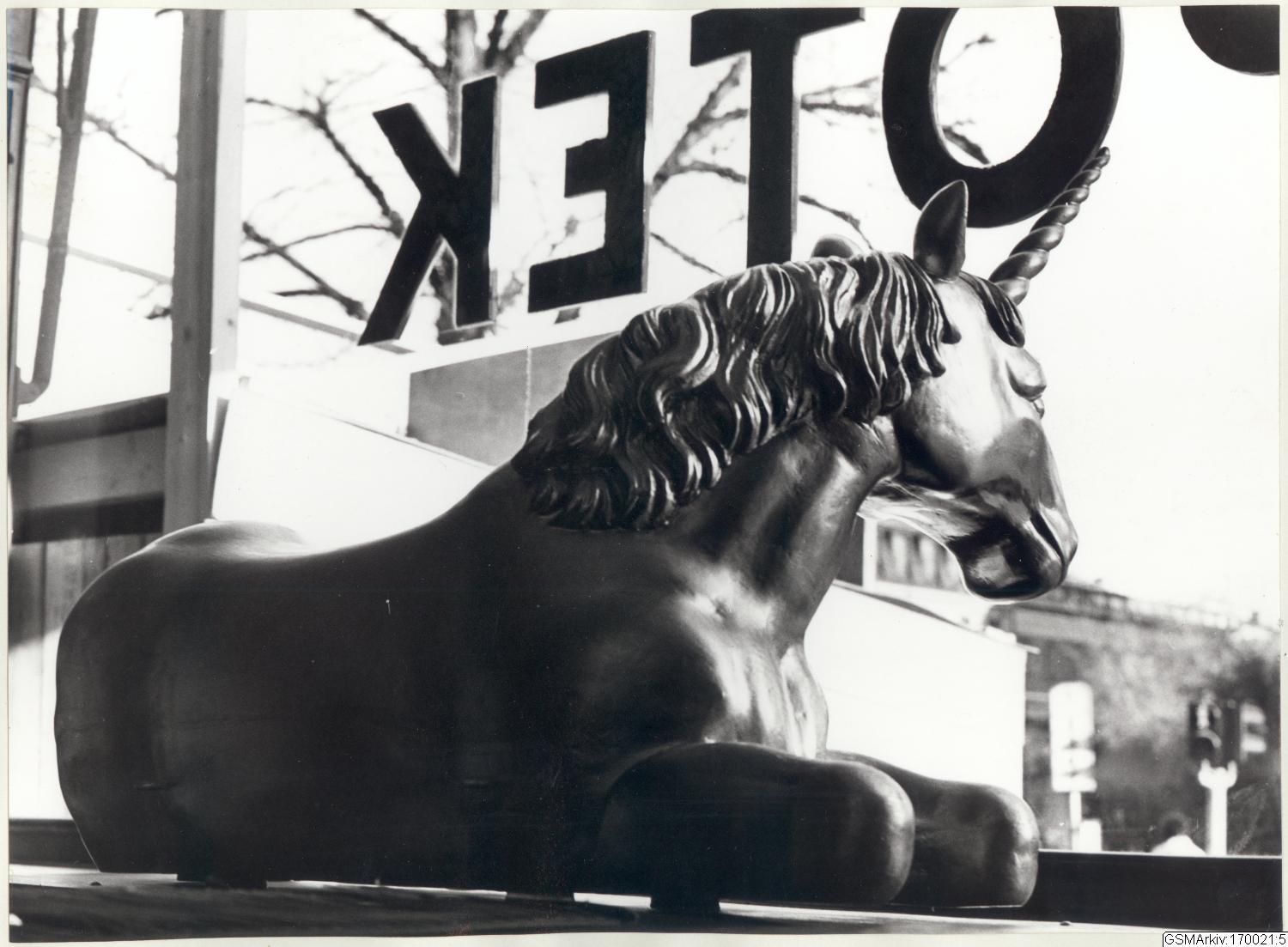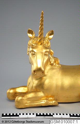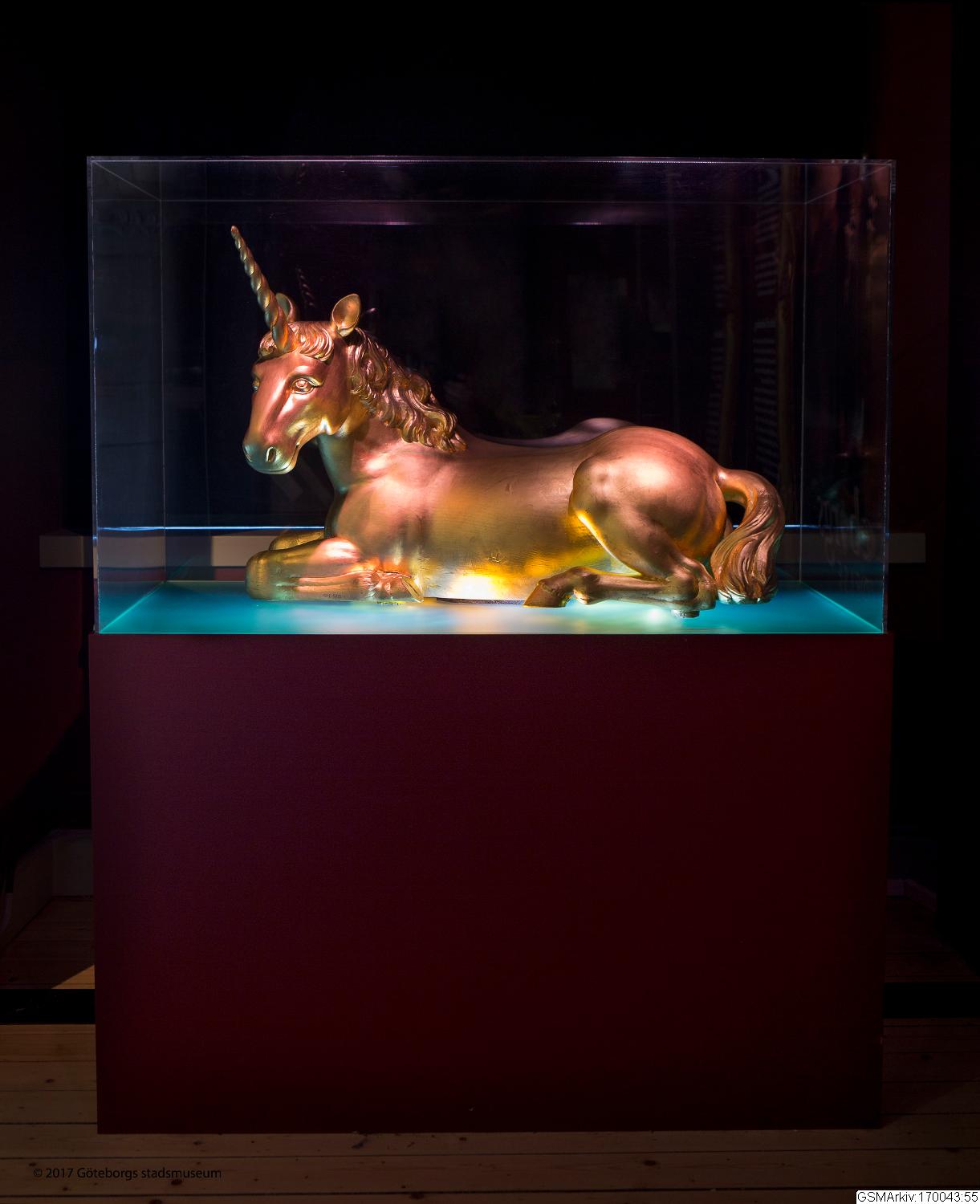 - Enhörning av trä från apoteket Enhörningen. Apoteket var Göteborgs första och öppnade år 1642 på Södra Hamngatan 13, mitt emot museet, på andra sidan hamnkanalen. Enhörningen var verksam på ny adress ända fram till 1968.