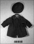 - Kappa och hatt av röd bomullsmanchester. 1/Kappan har insydd ärm, knäpps med 2 hakor och hyska. Liten liggande krage, motveck bak. Helfodrad med grått tyg. 2/ Hatt. Kulle av 6 kilar, brätte i dubbelt tyg svagt utsvängd med 5 rader stickningar. Kullen fodrad med vitt tyg. Omkrets inuti kullen 33,5 cm.#Christina Norén hade själv kappa och hatt i samma modeller men i annan färg.