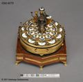 "Räknemaskin (Sauteriska räknemaskinen). Trol. tillv. av fabrikören och urmakarmästaren J. Sauter vilken erhöll rättighet att driva fabrikation av ur mm i Stockholm 1808. Hade dessförinnan varit verksam i Petersburg, Ryssland. (Sidenblad, Urmakare i Sverige, s. 135 o.f.). Bruksanvisning se U 284."