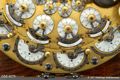 På kanten av den ännu orörliga horizontalytan befinna sig såsom redan är nämnd den tredje yttre halvcirkelformiga raden nummerskivor vilka liksom de förut beskrivna små skivorna äro betecknade med siffrorna 0 till 9 för att med den lilla, med en liten knapp försedda stången kunna flytta vilket nummer man önskar på den omkring nummertavlans gående stålbåge som är försedd med små hål för alla siffrorna.