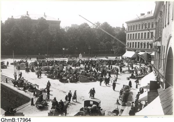 - Blick från Bazargatan mot Grönsakstorget en Torgdag.