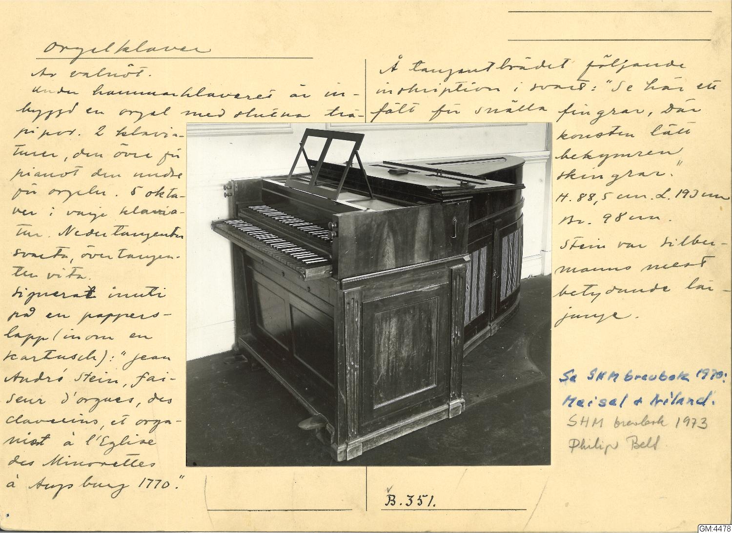 "Orgel-piano med dubbla klaviaturer. Sign. o. dat. 1770."
