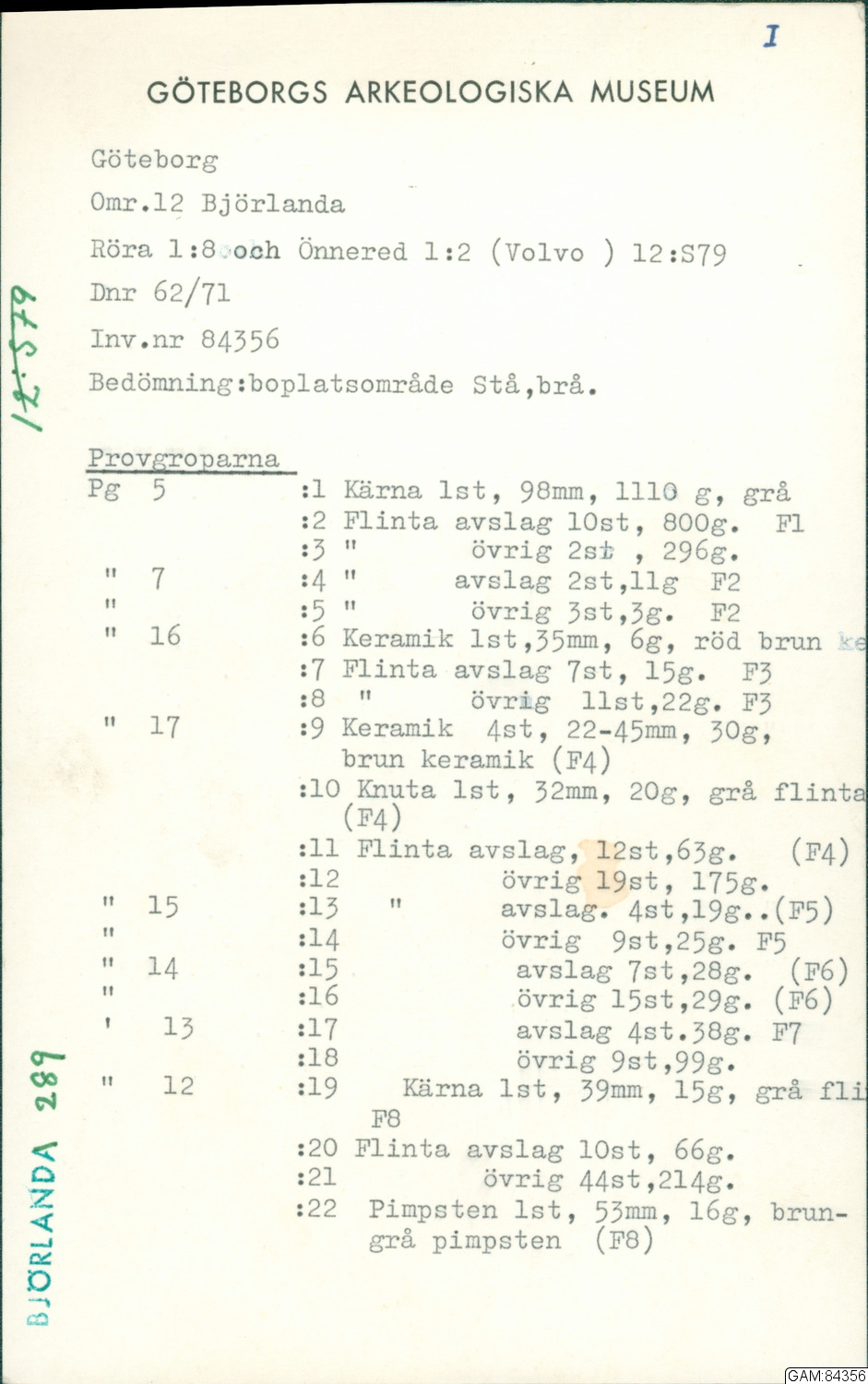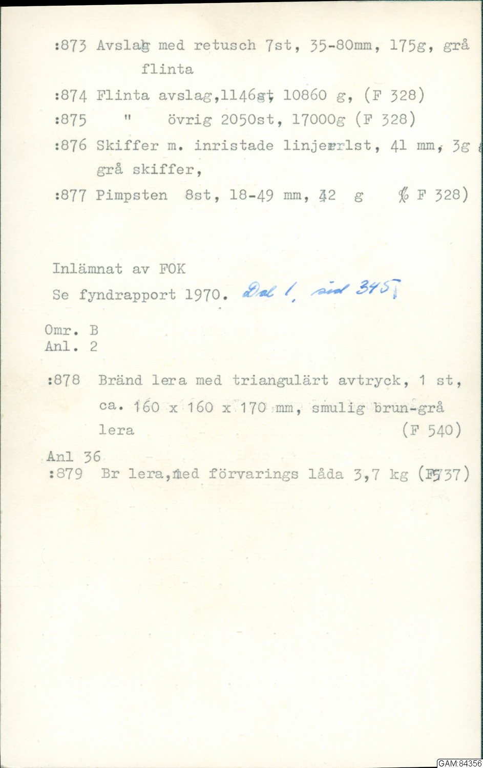 GAM:84356 :: utgrävningar, utgrävning