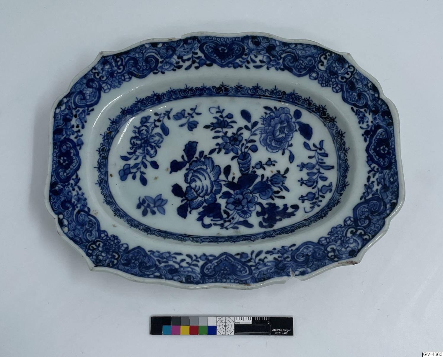 GM katalogkort 172. 18E. Porslin Ostindiskt 2. Fat, assietter, bålar