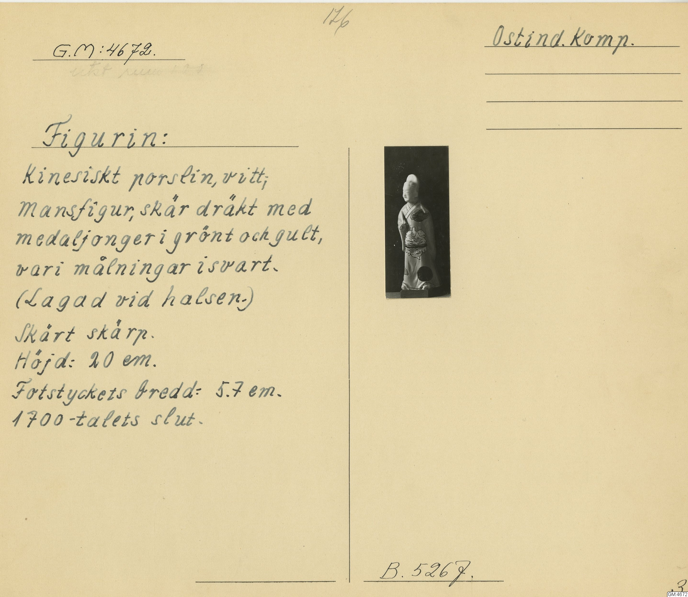 - "Figuriner, 2 st af kinesiskt hvitt porslin; manliga i kinesisk dräkt."