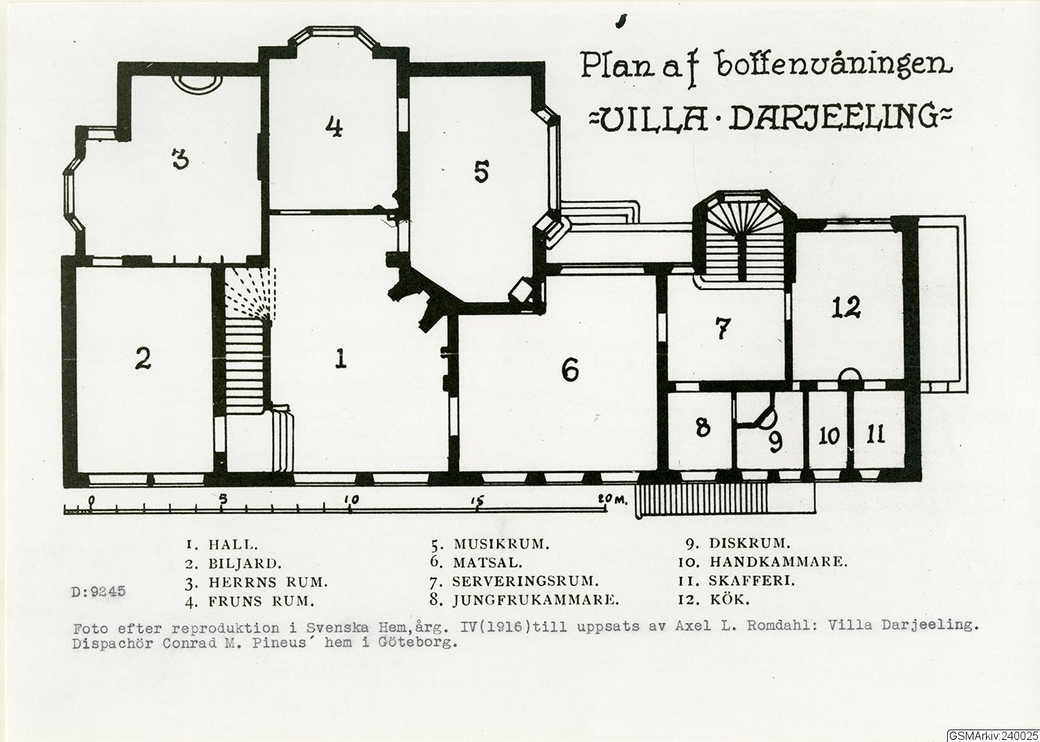 Ritning till Villa Darjeeling, bottenvåningen. Uppfört 1911-12 för familjen Conrad Pineus.