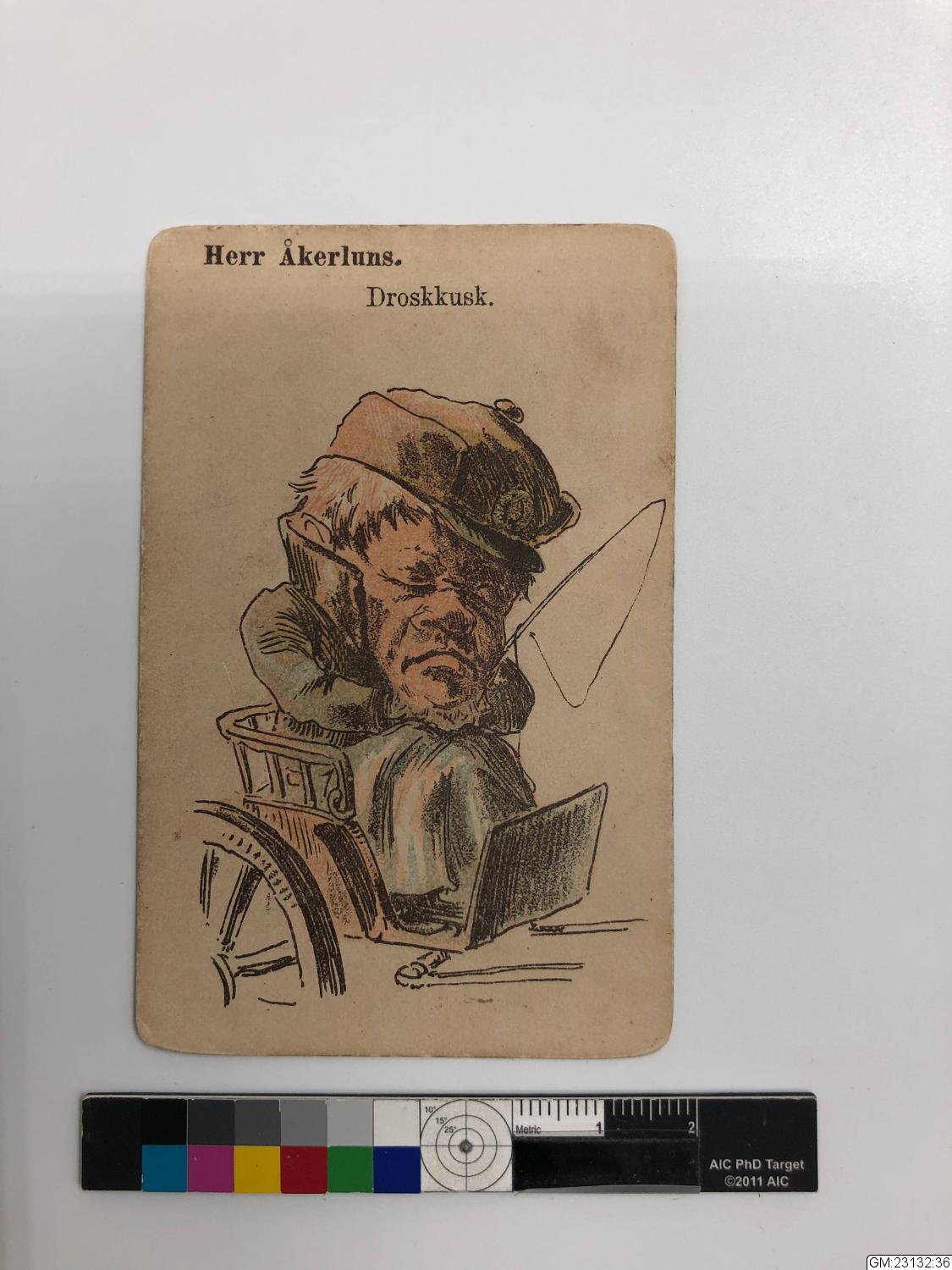 Användare av databasen varnas för att vissa poster kan innehålla bilder eller språk och termer som skildrar människor på ett sätt som kan uppfattas som stötande. En del objekt i samlingen kan också upplevas som obehagliga eller stötande.Vi är medvetna om att tillgängliggörandet är problematiskt. Vi har valt att inkludera denna historiska information eftersom den är en del av samlingarnas historia.