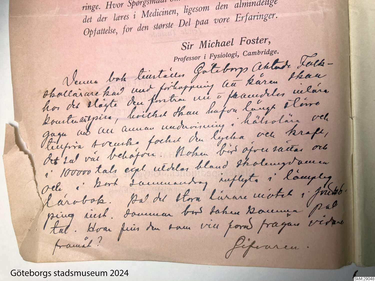 Göteborgs skolförenings bibliotek; Denna bok tillställes Göteborgs stads folkskollärarelår med förhoppning att kåren skall hos …