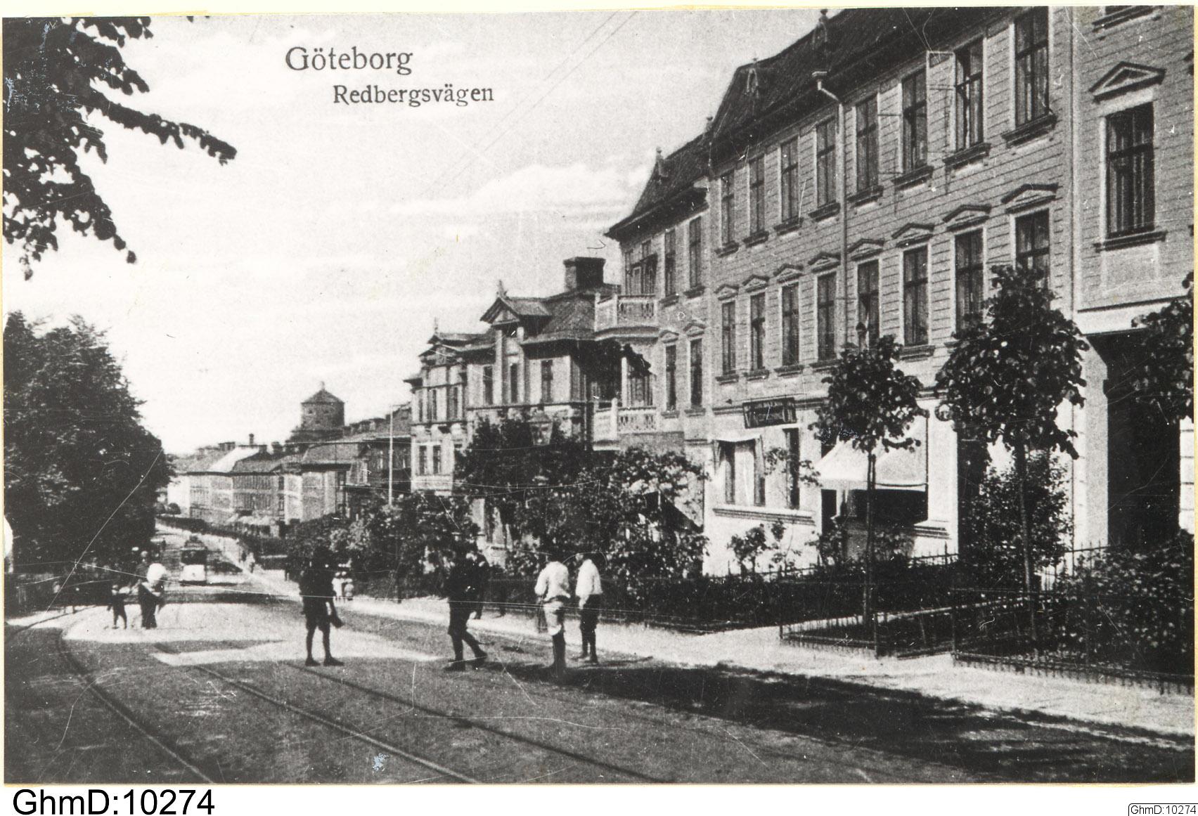 - Vy åt väster tagen från en punkt strax intill Hökegatan. Ursprungligen vykort, [följande text överstruken på arket:] originalet förlorat genom slarv av låntagare.