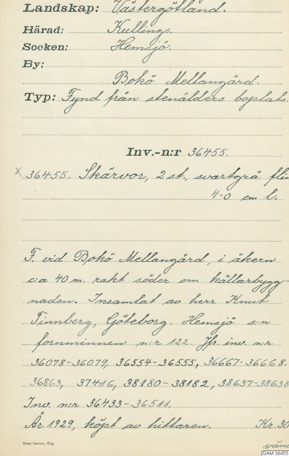 GAM katalogkort : V A : Västergötland : Kullings härad : Stenåldern : Boplatser