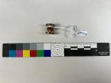 gulmetall knapp möjligen av mässing. möjligen till gehäng eller hölster går att ta isär i två delar