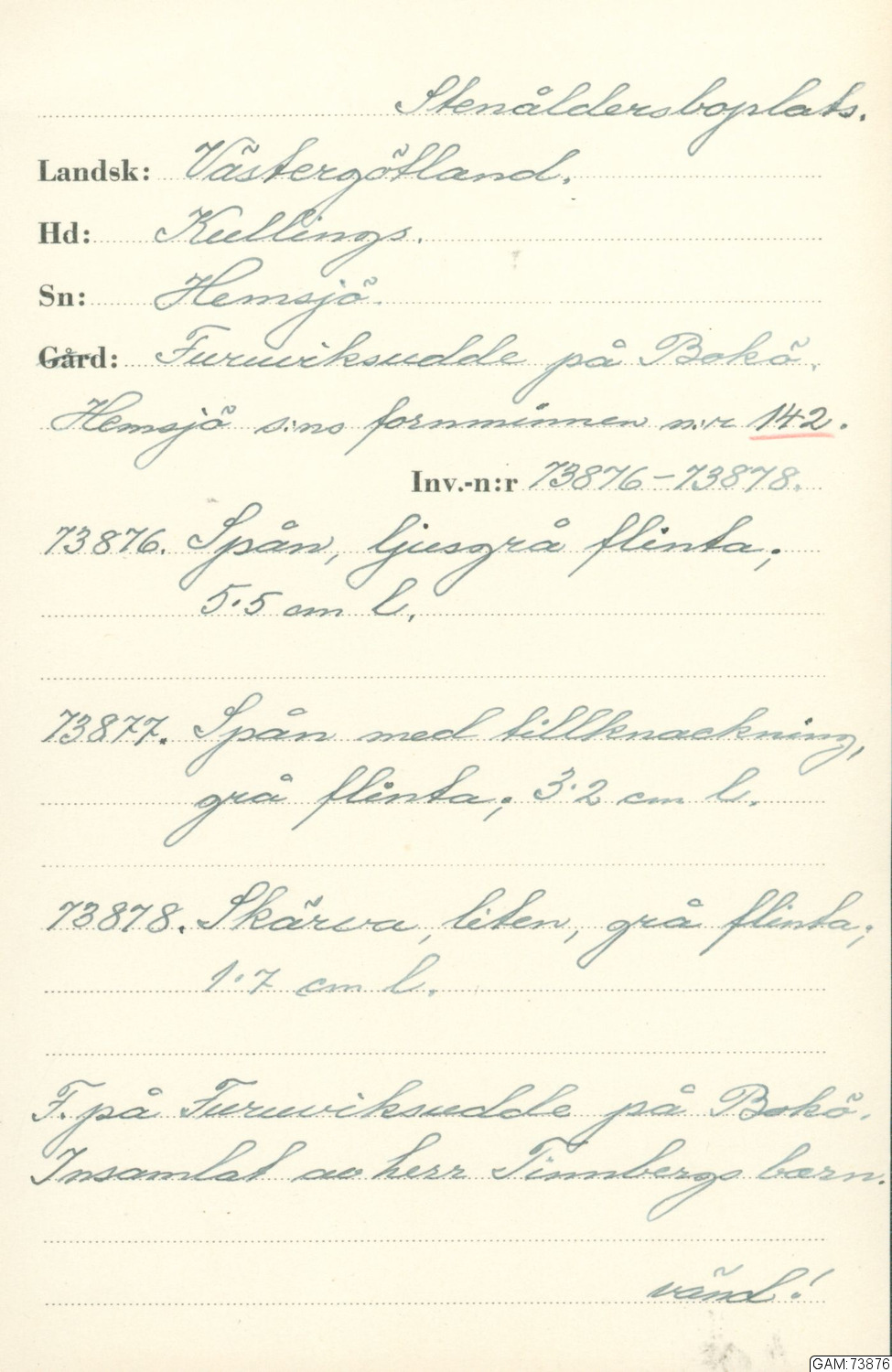 GAM katalogkort : V B : Västergötland : Kullings härad : Stenåldern : Boplatser