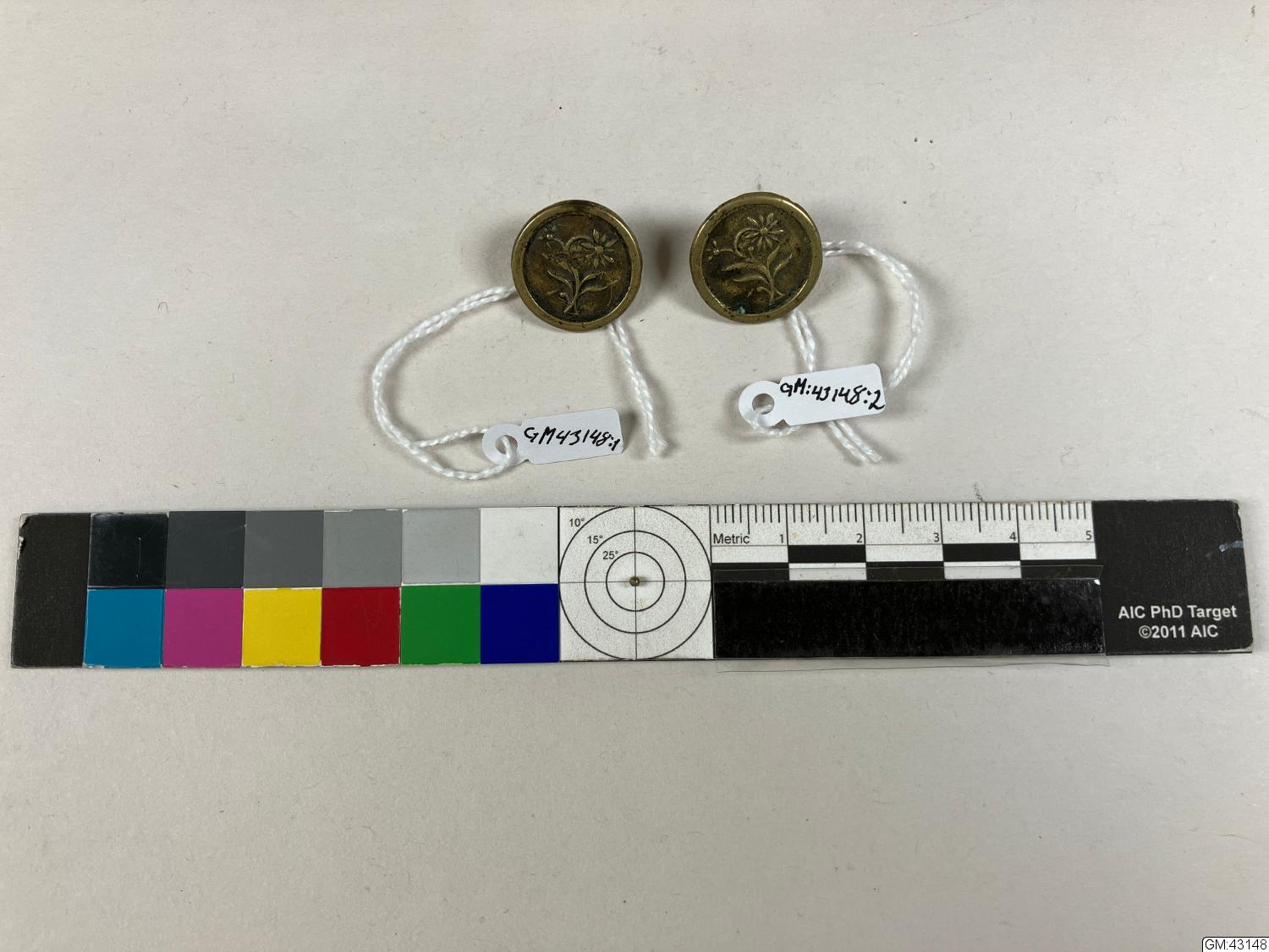 knappar 2 stycken av gulmetall med blomma på framsidan