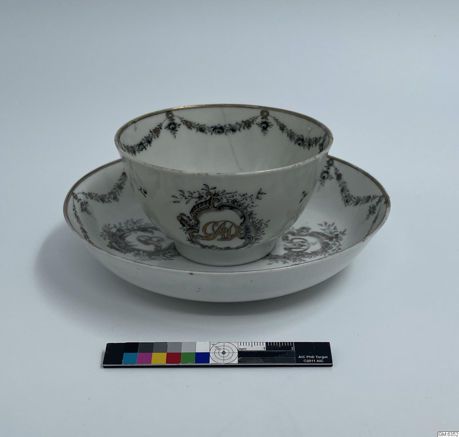 GM katalogkort 170. 18E. Porslin Ostindiskt 1. Thé mm 1. Kannor, koppar, fat