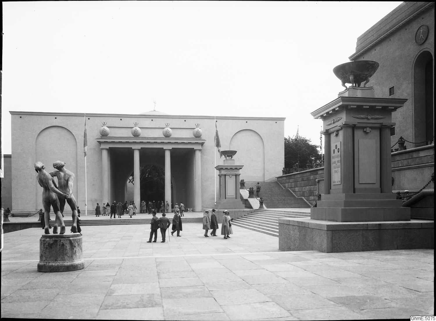 - Huvudéntren under Jubileumsutställningen 1923. Till höger Entrén till Konstmuseet.