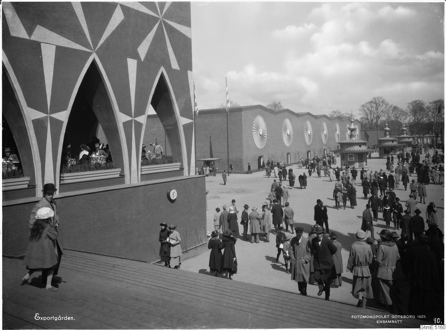 - Vy från Exportgården på Jubileumsutställningen 1923. Efter Jubileumsutställningen flyttade Svenska Mässan in i lokalerna under hösten 1923 och man finns fortfarande kvar på sammma plats, 2021. Till vänster i bild syns Kafé Röda valven.