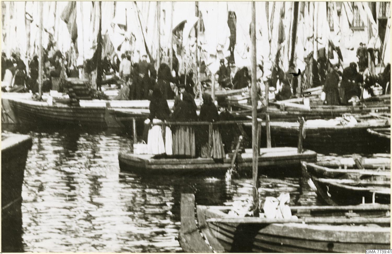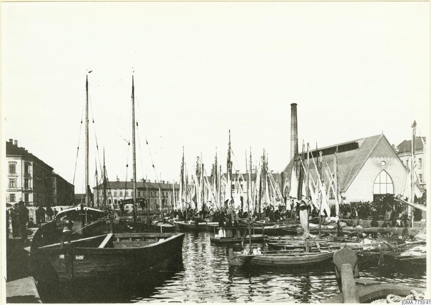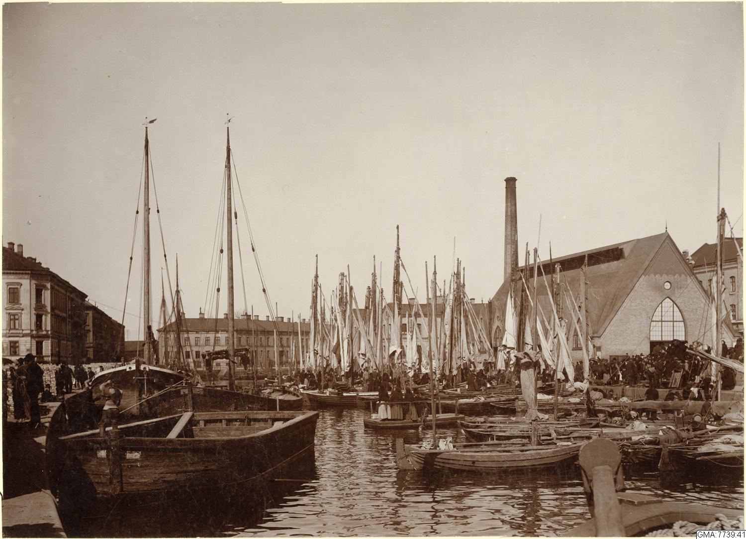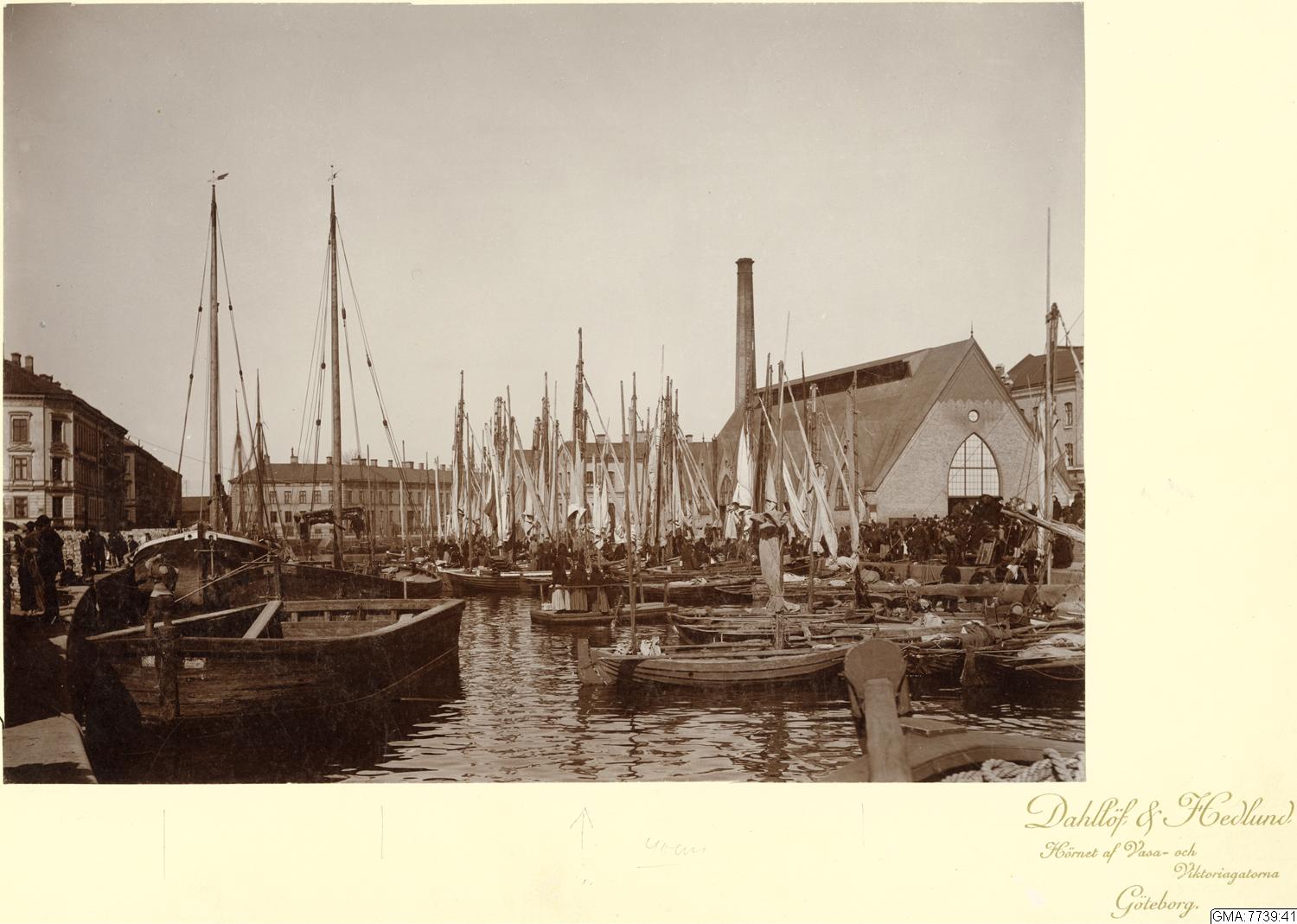 Kommers vid båtarna i Rosenlundskanalen vid Fiskkajen utanför Feskekörka.
