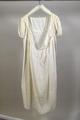 Vit damklänning av bomullstyg, genombrutet med noppor. Består av liv och kjol.