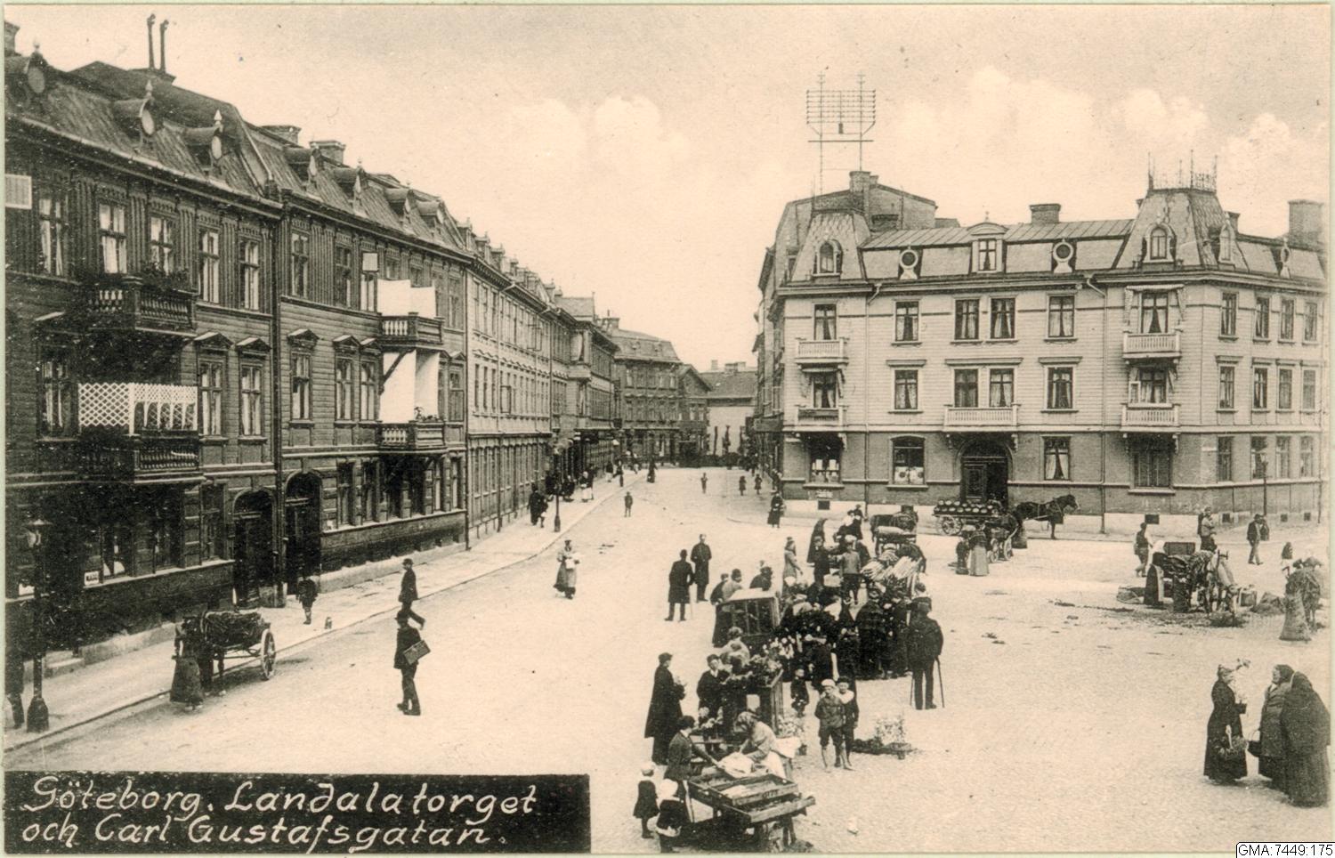 - Kapellplatsen och Karl Gustavsgatan norrut. Torget omges av landshövdingehus, huset i bildens mitt har telefonledningar på ställning med isolatorer.