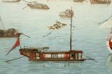 Hamnanläggning, hus, figurer och båtar är detaljerat återgivna. I vissa fall är det möjligt att se de enskilda husens interiörer, kinesisk skrift på båtar och byggnader