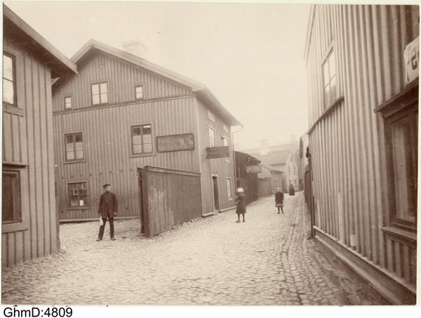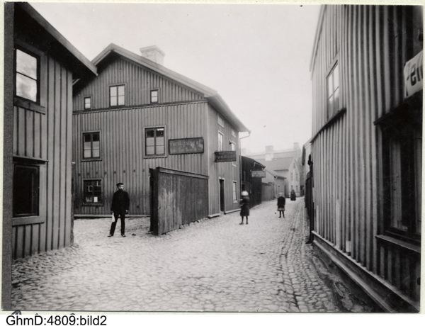 - Fr.v.: 1. del av Karl Johansgatan 80 (Majornas 1 rote, nr 126), 2. Majornas 1 rote, nr 125. Näst sista huset på vänster sida är Majornas 1 rote, nr 123 och sist på samma sida kommer Majornas 1 rote, nr 137 (Gröna Gatan 11A). Närmast t.h. del av Karl Johansgatan 82 (Majornas 1 rote, nr 119-120).